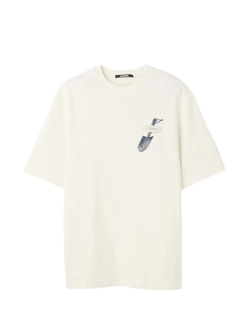 Off-white, graphic, crew neck, short sleeves.