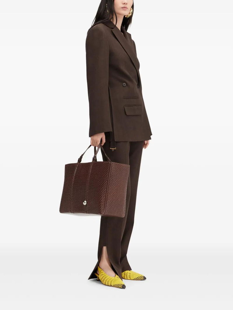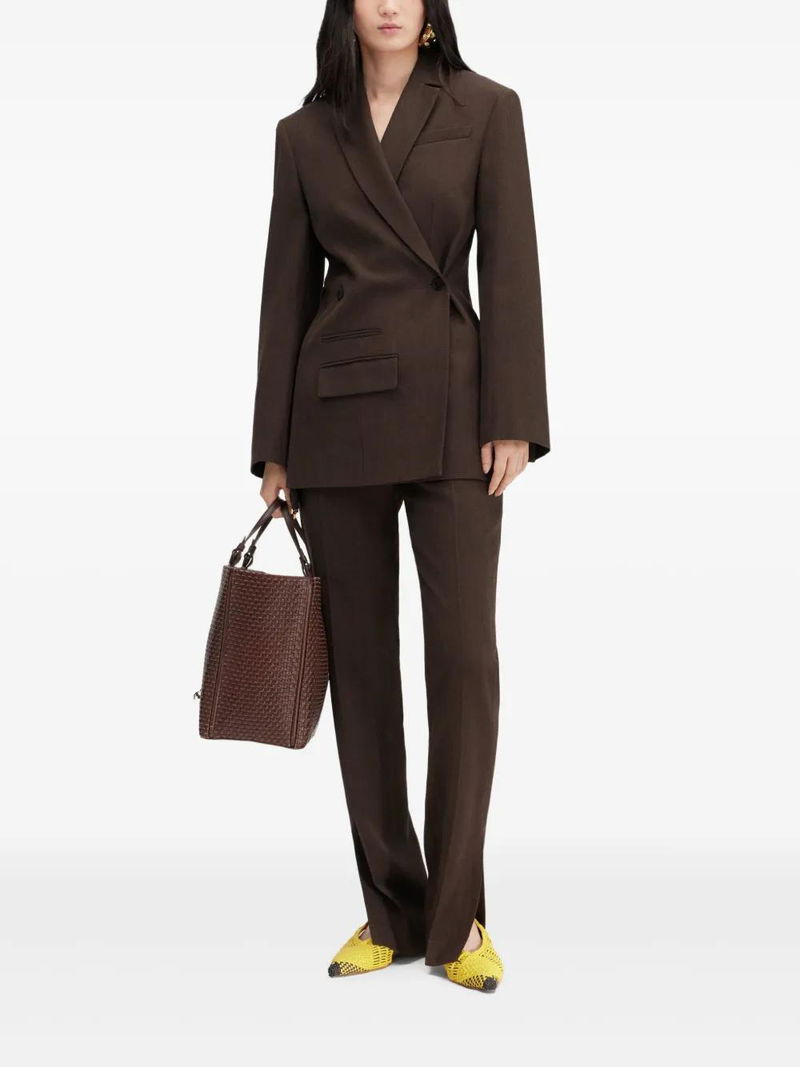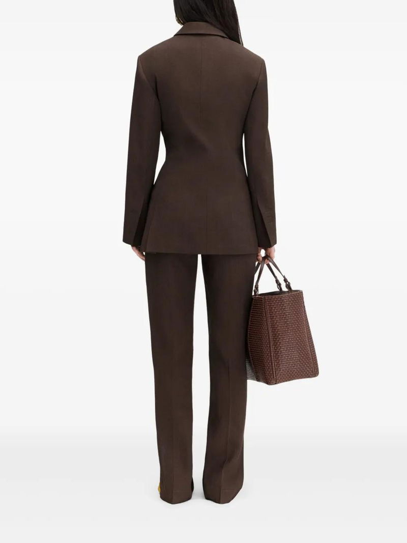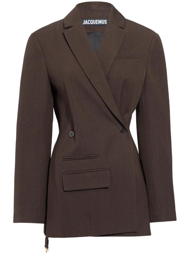 coffee brown double-breasted button fastening chest welt pocket front flap pocket buttoned cuffs