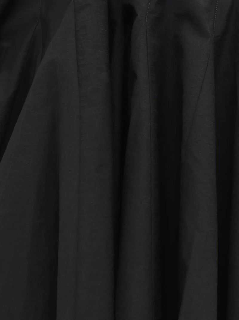 Black halterneck tie fastening draped design gathered detailing asymmetric hem.