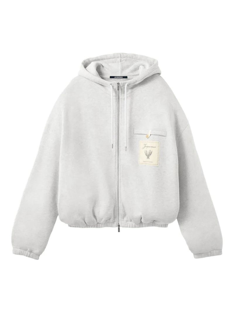 grey drawstring hood zip fastening elasticated cuffs and hem