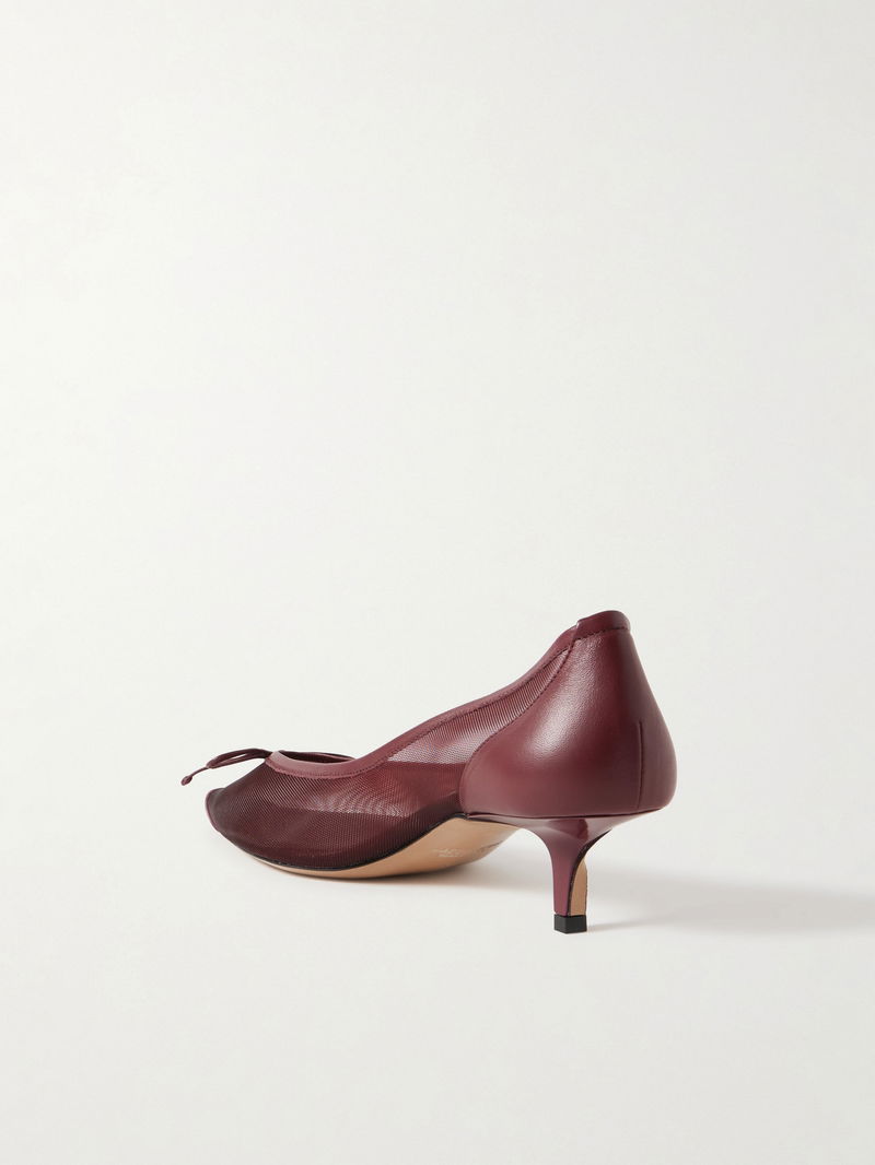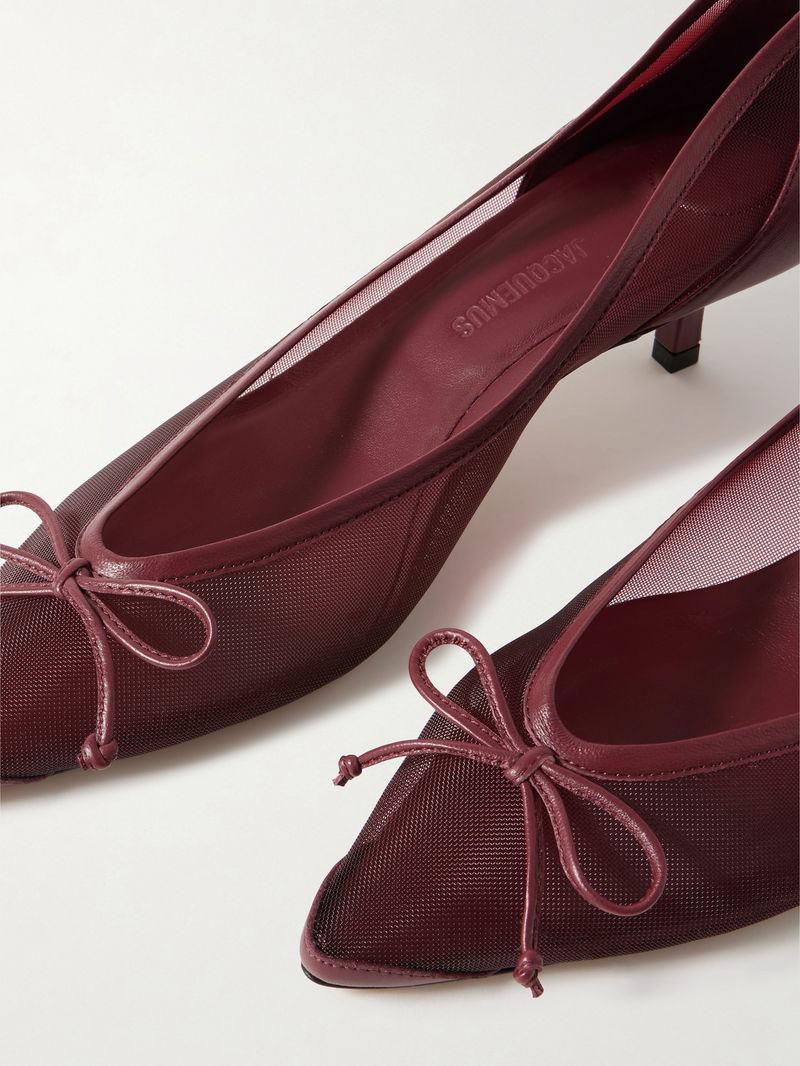 Translating to "turned" in French, Jacquemus' 'Tourni' pumps are named after their artfully twisted kitten heels. Trimmed with leather, they've been crafted in Italy from mesh and have elegant pointed toes with dainty bows at the vamps. Wear yours with mini and midi hemlines.