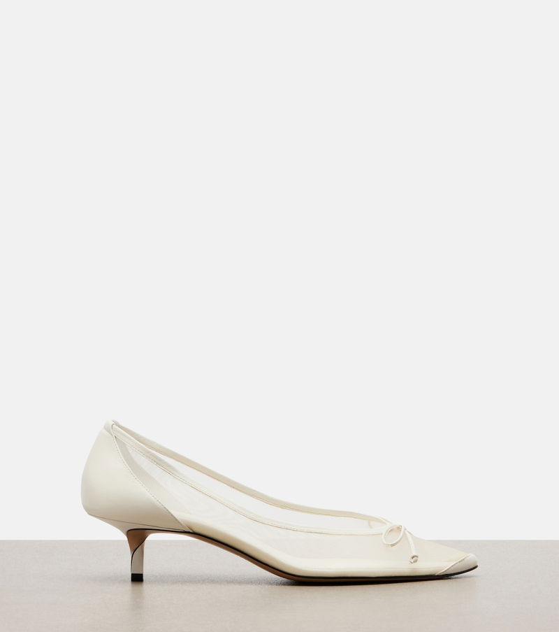 These Tourni pumps from Jacquemus showcase a mesh construction and a sheer finish. The pair is complemented by leather trims and bow details on the uppers, and set on twisted heels with a glossy finish.