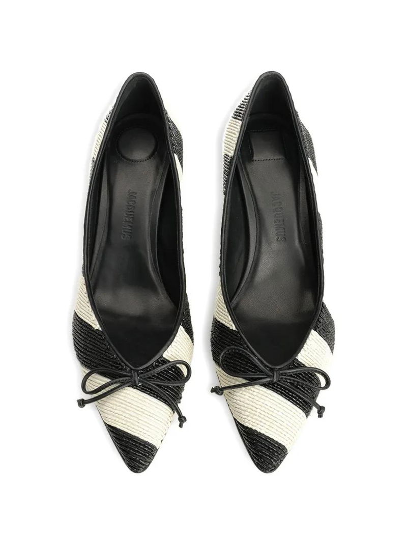 Black/white striped pattern pointed toe bow detail.