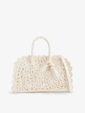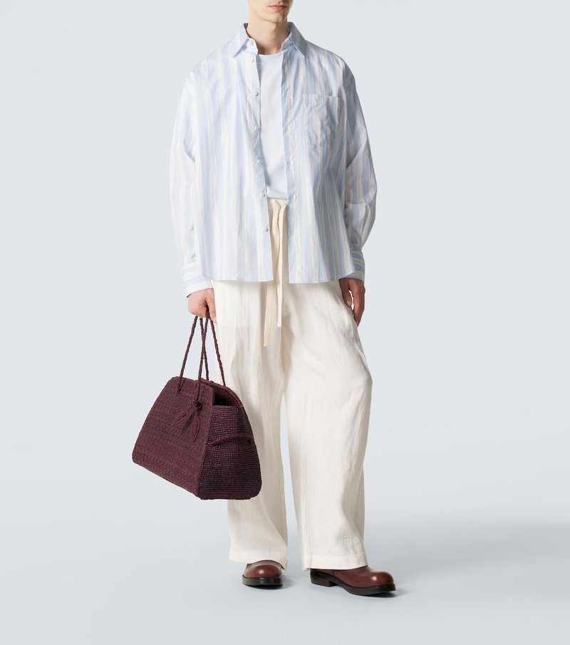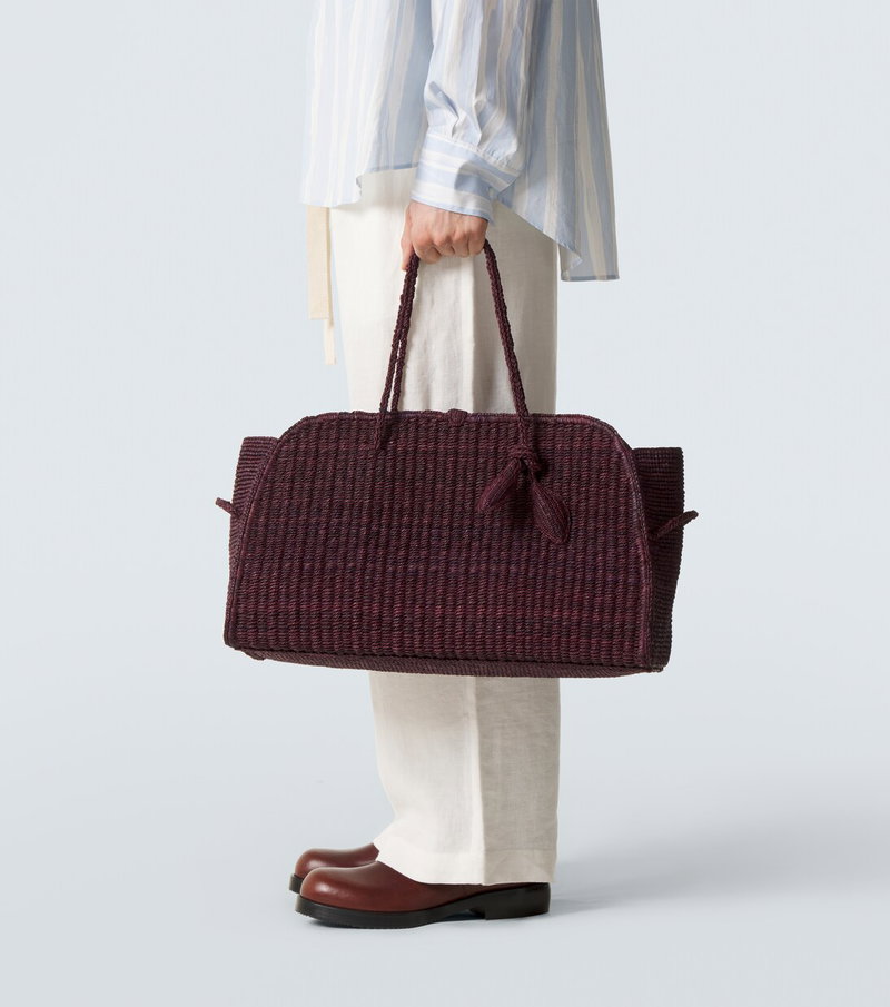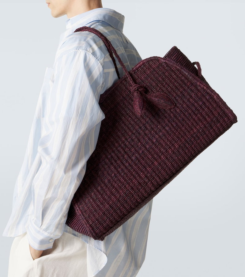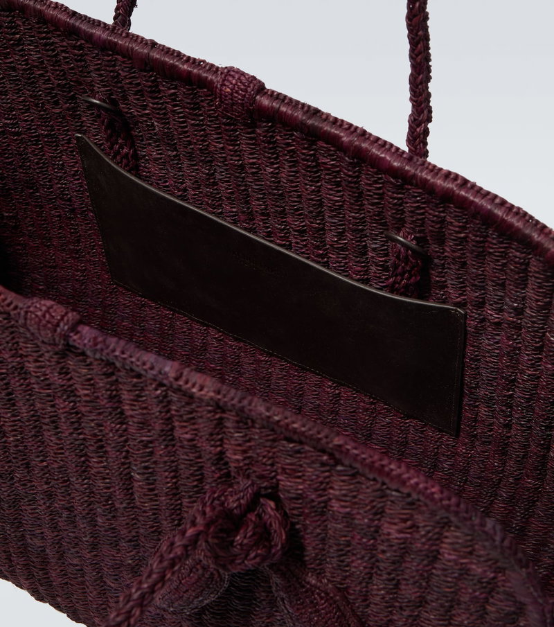 Lean on Jacquemus' Turismo shopper for a characterful companion to your everyday. This Large design is woven from raffia and features braided tubular handles, a knotted detail on the handle, and a magnetic closure.