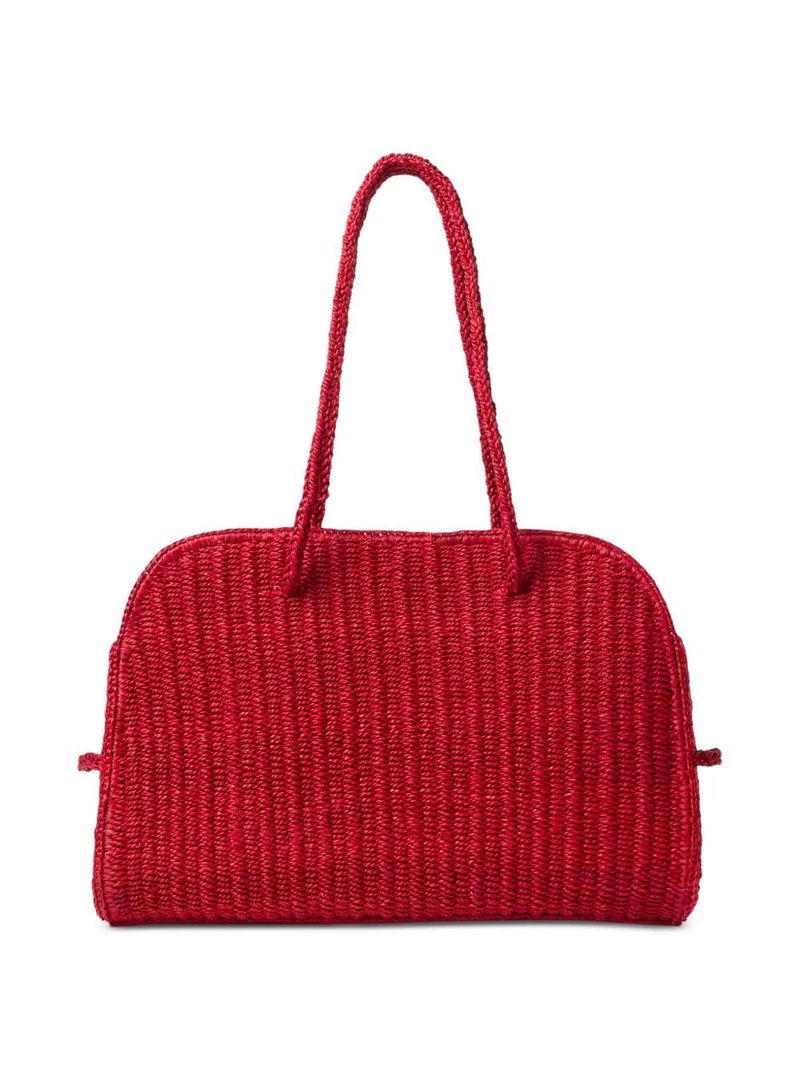Red raffia top handles.