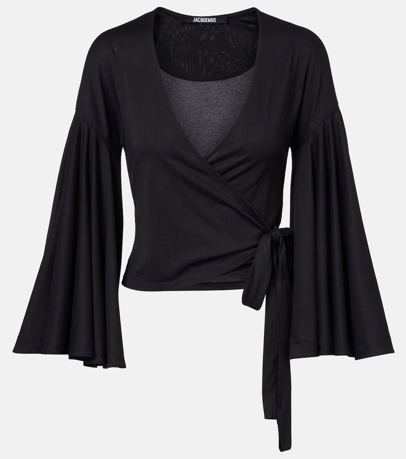 Jacquemus brings a characterful vision of French fashion to the design of every new collection. This Ventadou top is designed with a wrap-front silhouette and a self-tie waist, a flattering neckline, and fluid trumpet sleeves.