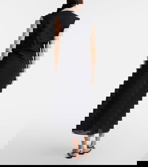 Cotton poplin midi dress. Square neck. Darts at bodice.