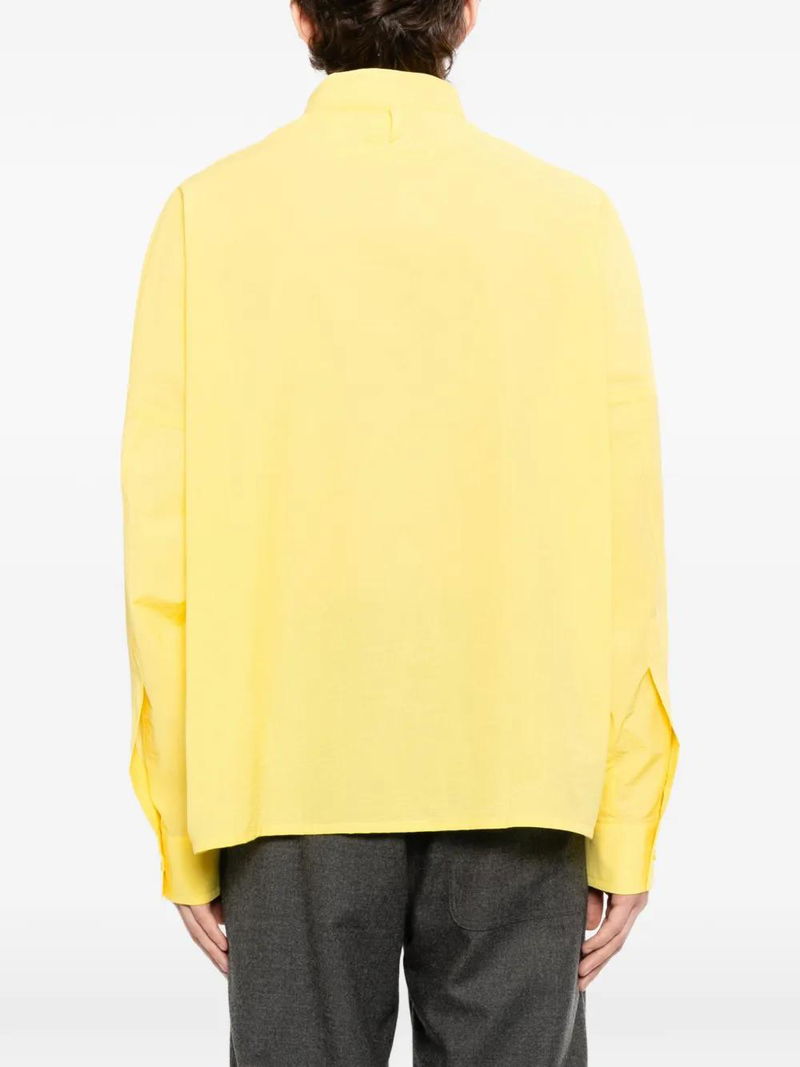 Lemon yellow, front concealed button fastening, wrap design, chest patch pocket, band collar.