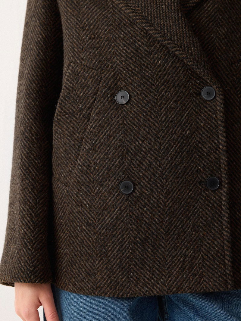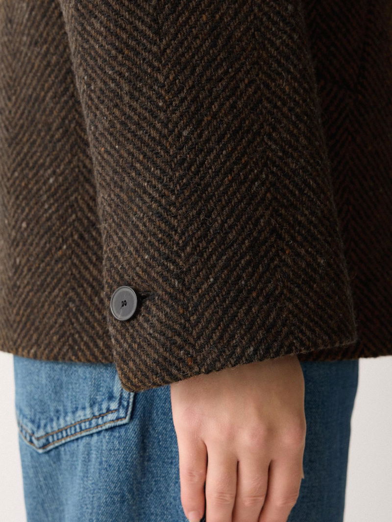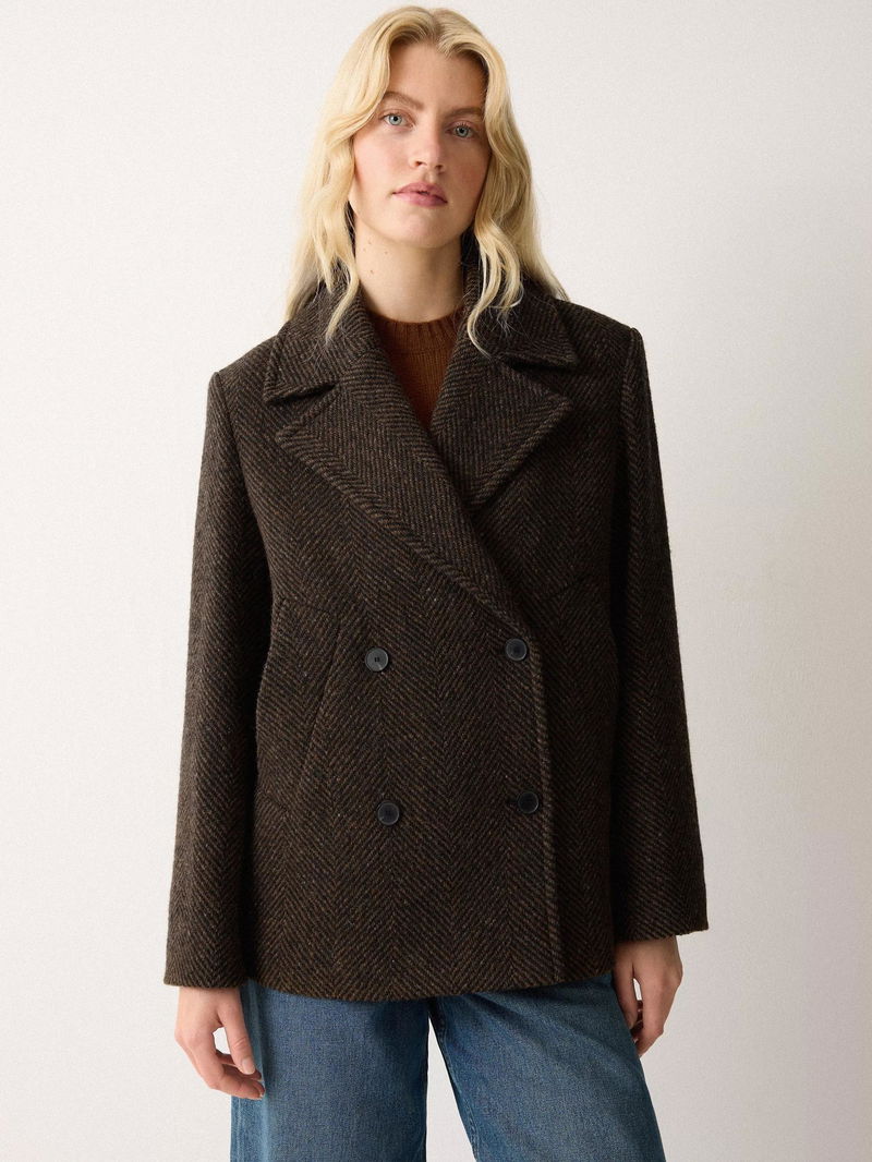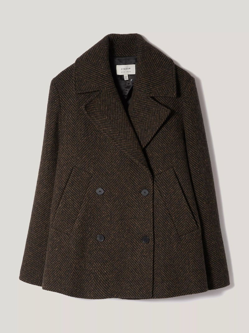 Jigsaw's Alba coat updates the classic pea coat for the new season in an A-line silhouette. A chunky herringbone wool puts their modern spin on British heritage fabrications, complete with a double-breasted front and bracelet length sleeves. We love it for smartening a crisp white shirt and jeans.