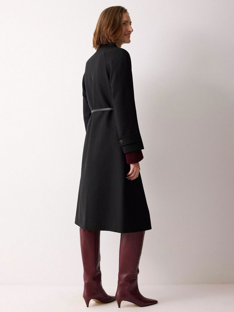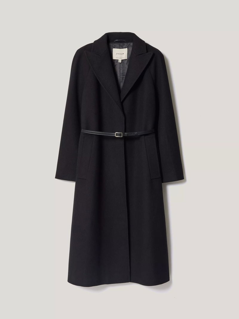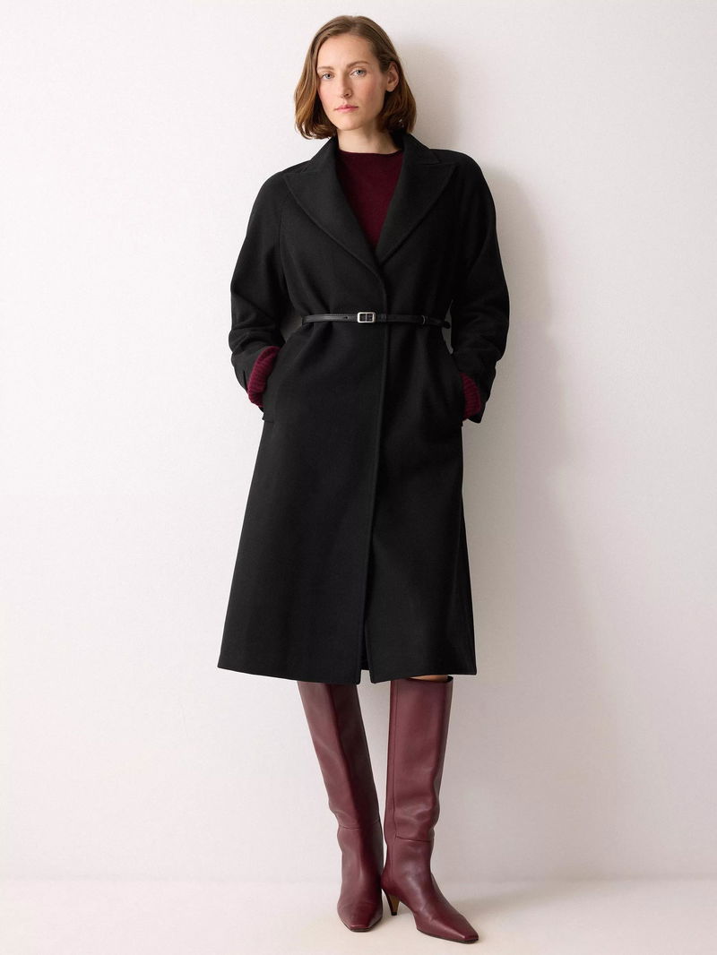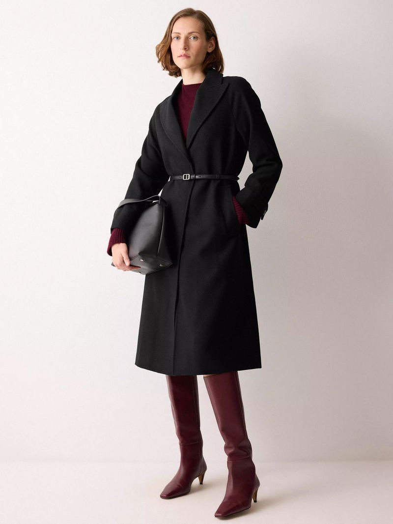 Cut for a smart fit in a luxurious woollen-blend twill fabrication, this raglan coat bridges the gap between the seasons, delivering endless outfit opportunities. Designed for versatile layering, it features an internal lining, a contemporary below-knee fit and a skinny leather belt that you can fasten to create a cinched-in silhouette.