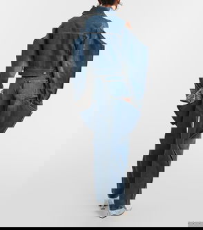Denim's new laidback narrative echoes the relaxed mood of the season. Included is the Gwen jacket, a contemporary collarless design in a light vintage blue wash. This has been achieved by snow washing, a sustainable process which uses ozone machines, artificial stones that can be reused and air cleaning as opposed to bleaching. This gives each piece of denim a unique, mottled effect. Wear with the matching jeans for a double denim look.