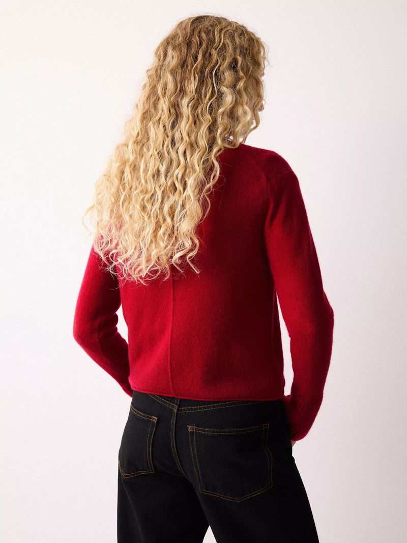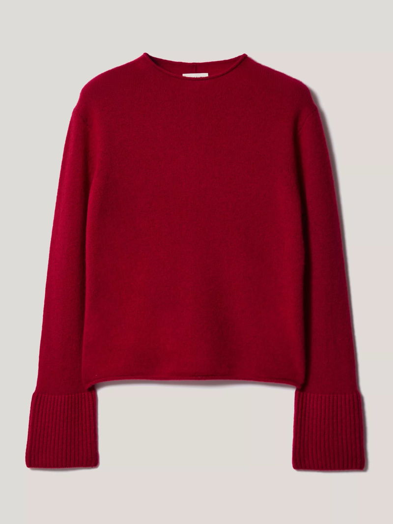 The Eldon jumper returns for another season. Loved for its ultra-feminine silhouette with a minimal rolled neckline and fluted cuffs, this wardrobe signature highlights the sumptuous, lofty feel of Cloud cashmere, which has been knitted off gauge. The perfect transitional layer for autumn and beyond.