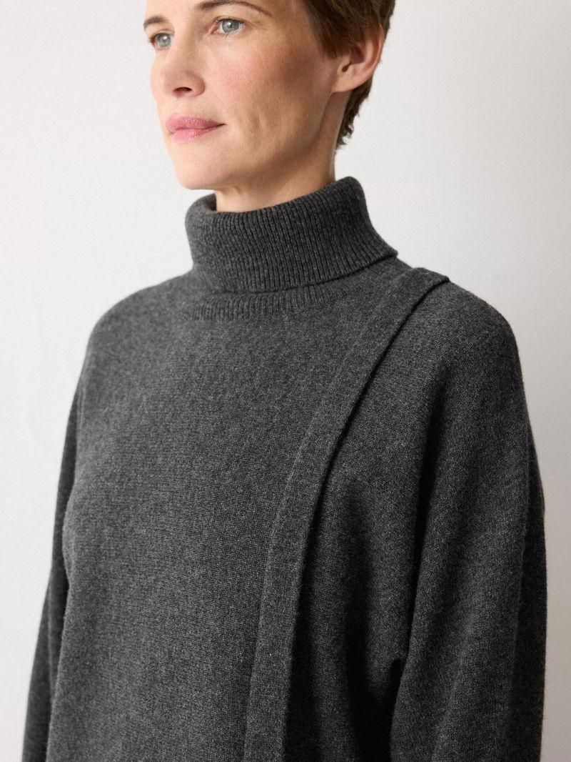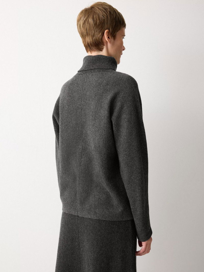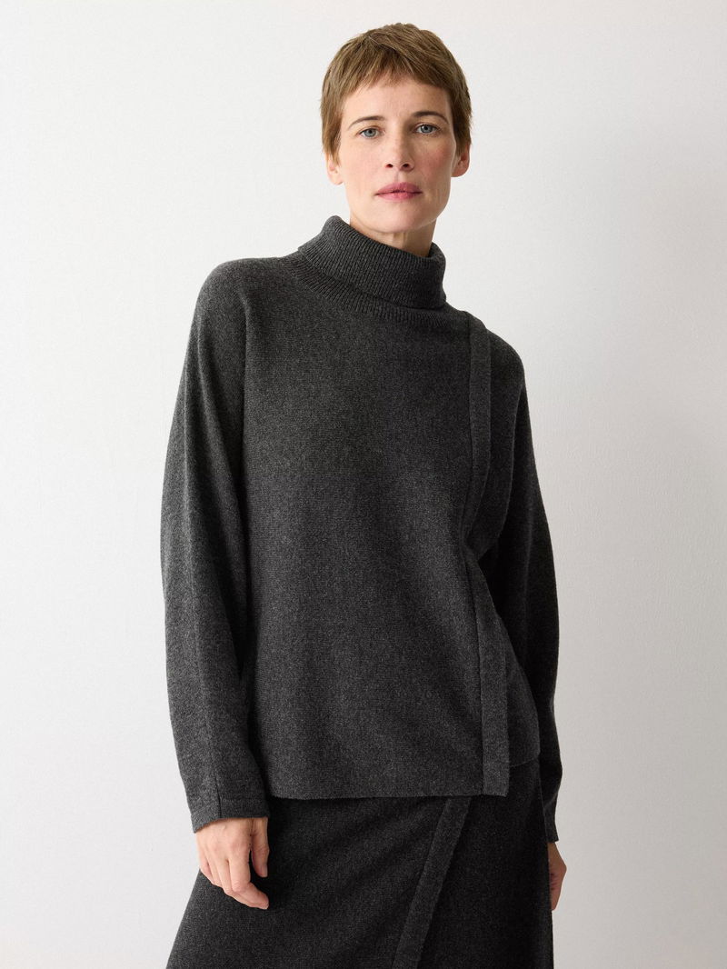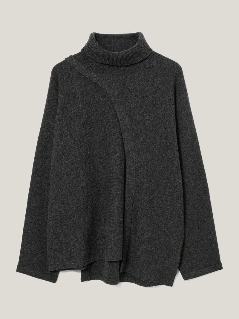 Pure wool lends this relaxed jumper a lightweight, cosy feel while still exuding a classic yet contemporary look. The ribbed turtle neck is accentuated by a front overlap seam, alongside a clean-finish hem and cuffs, making this knit a sophisticated choice for the colder months.