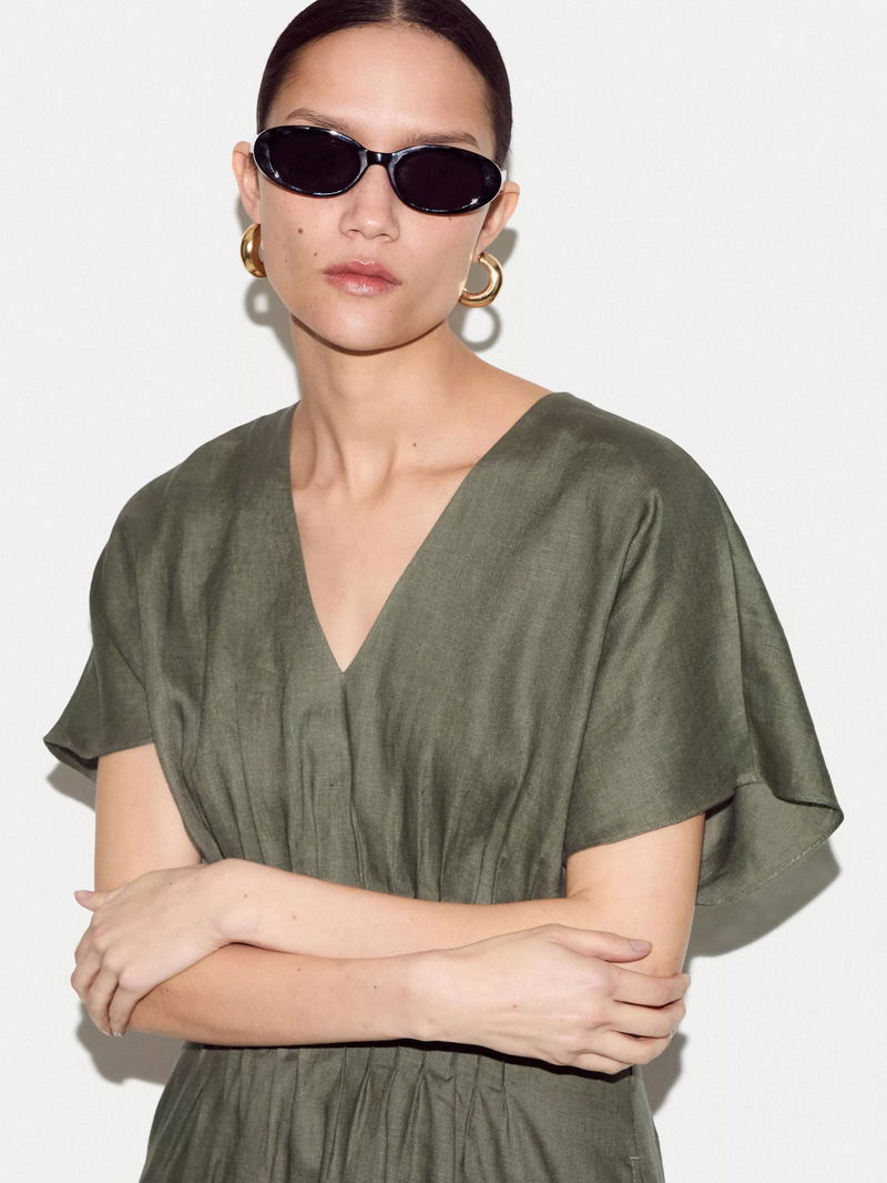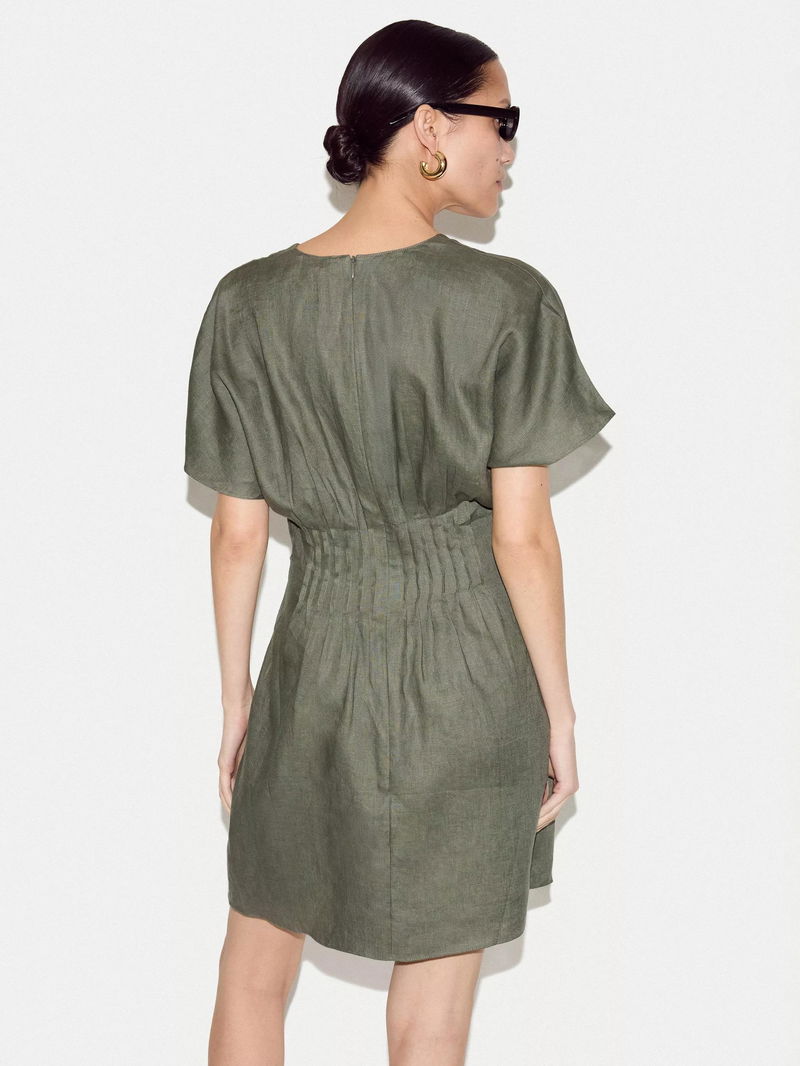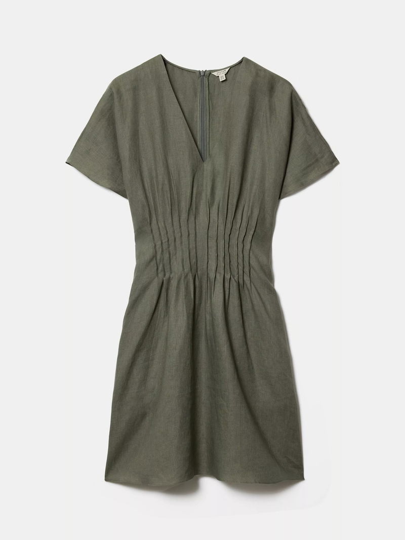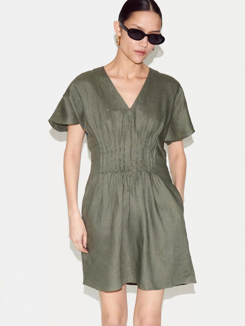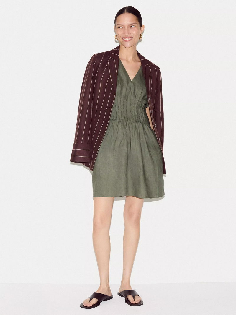 This pintuck linen dress offers a timeless, feminine silhouette with delicate detailing at the bodice. The lightweight fabric makes it a perfect choice for warm-weather occasions. Style with lightweight sandals or ballet flats.