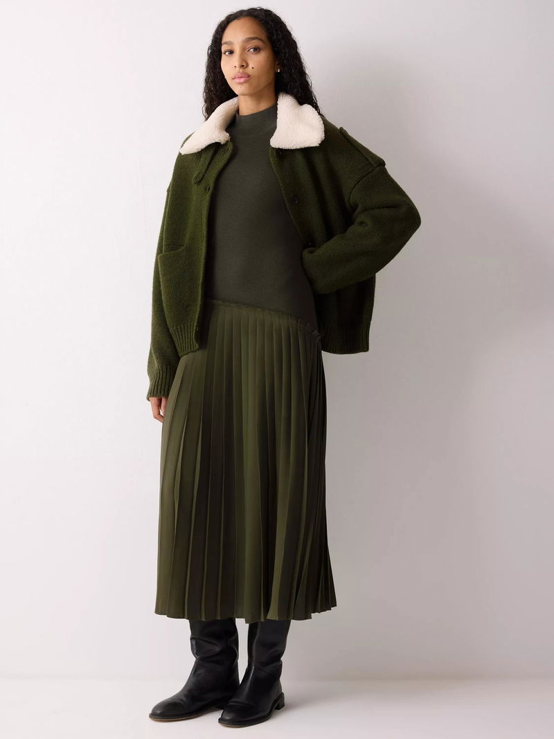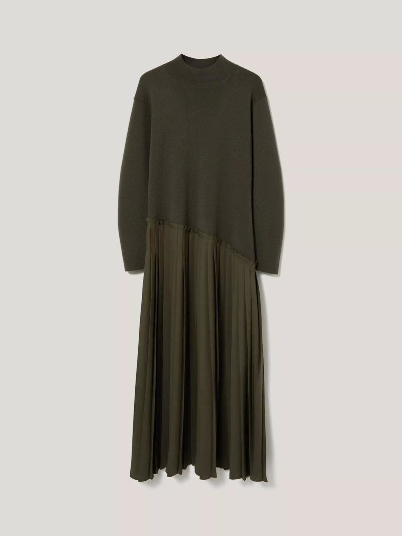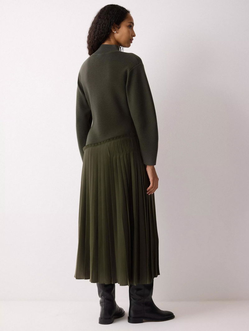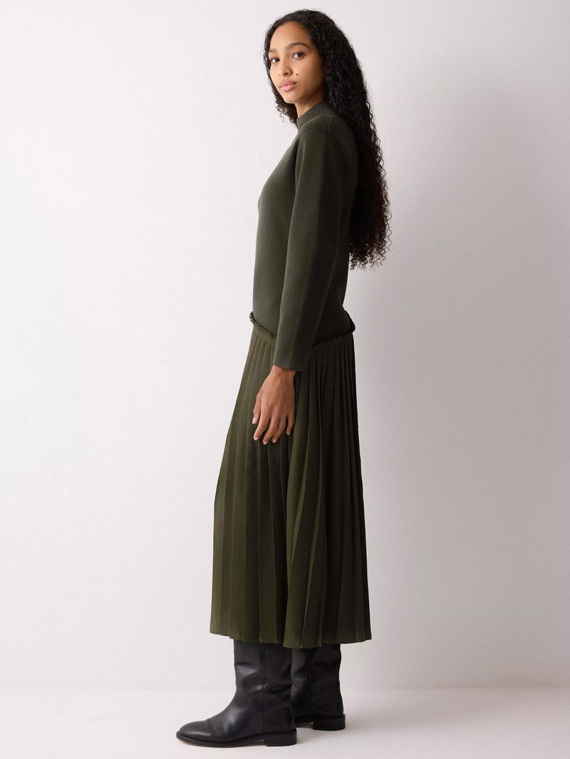 Pleated Skirt Wool Rich Jumper Dress, Khaki