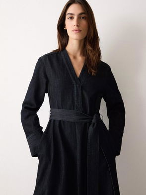 Stitched seam panels and a central full zip front create an elongated silhouette with this midi dress for all your summer excursions. Crafted from a beautiful soft linen-blend, it also features a detachable self-tie belt to dress up your look for the evening with a more cinched-in shape.