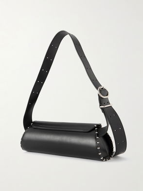 Buffed calfskin shoulder bag in black.· Adjustable pin-buckle shoulder strap· Logo stamp at face· Magnetic press-stud flap· Nappa sheepskin lining· Gold-tone hardware.