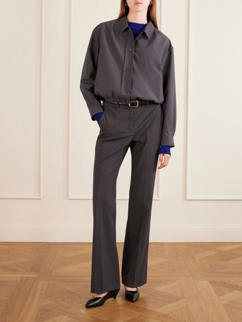 Jil Sander's shirt is a minimal staple that will take you through the seasons with refined appeal. Spun from wool for a relaxed drape, it’s gently gathered at the hem and framed by subtle blouson sleeves for soft structure.