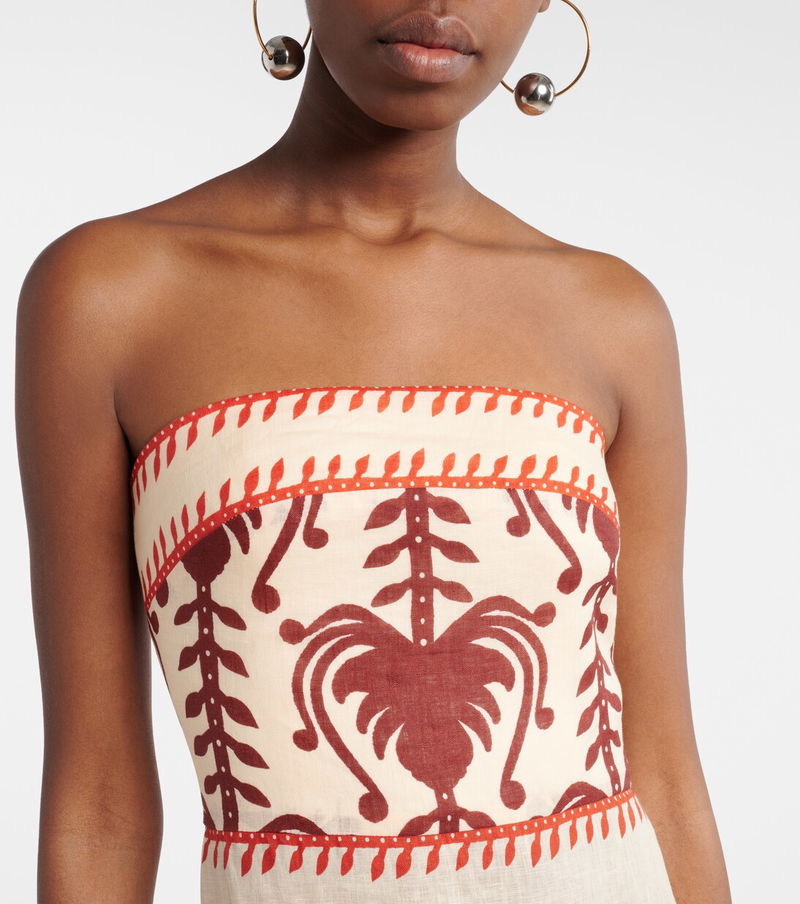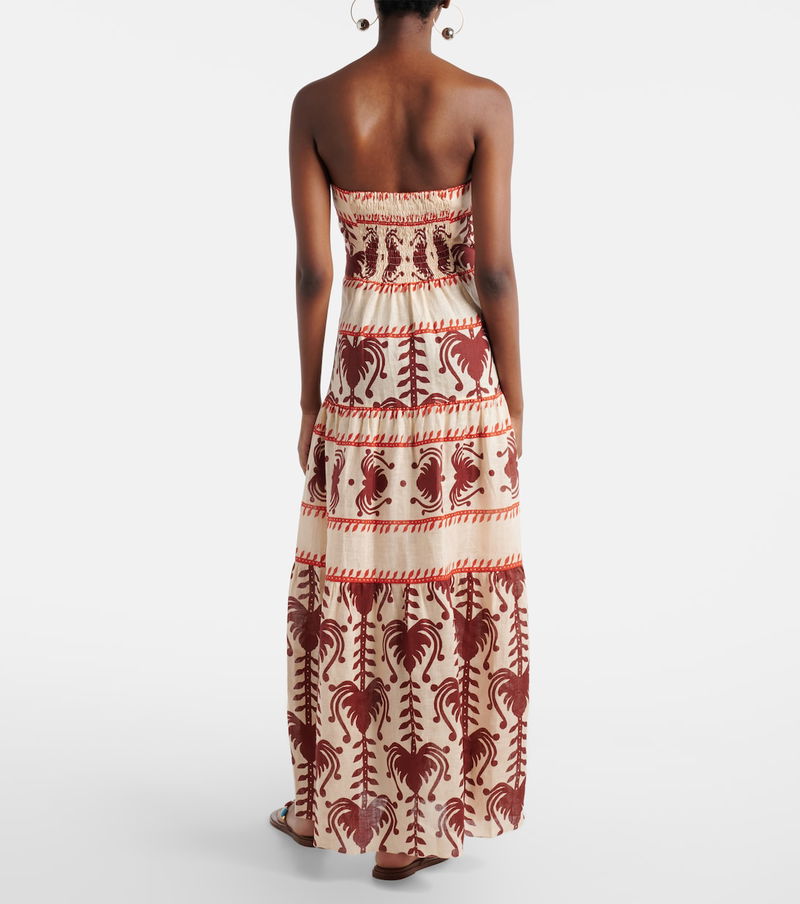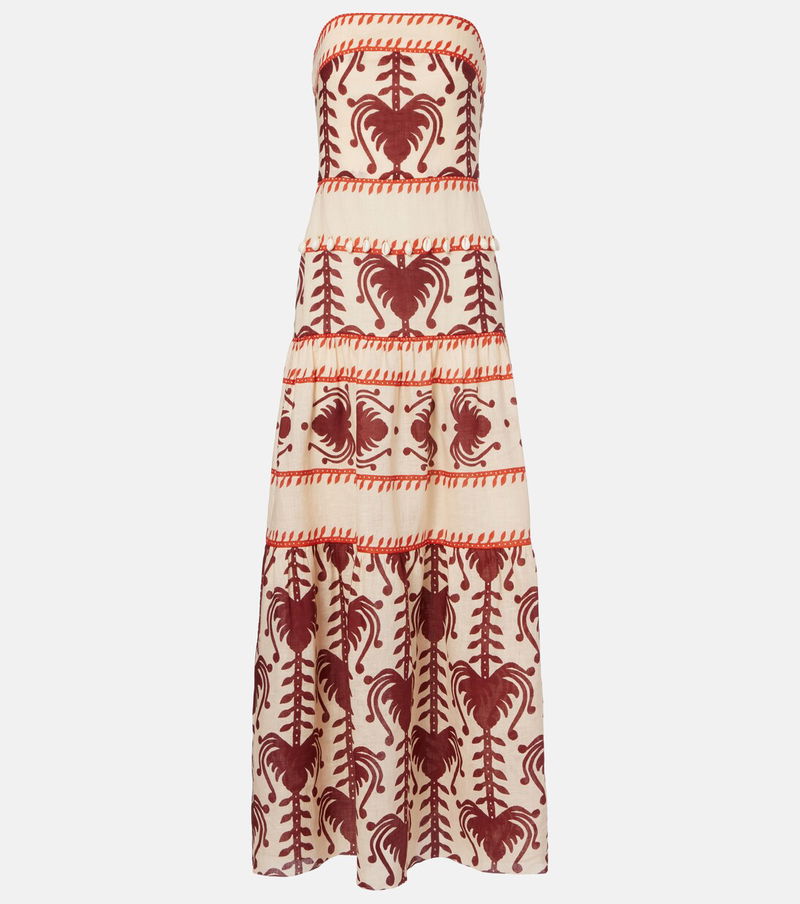 Johanna Ortiz based her eponymous brand in her hometown of Cali, Colombia, to celebrate the city's colorful soul. In signature fashion, this linen maxi dress showcases a vibrant artisanal motif and a tiered, strapless silhouette.