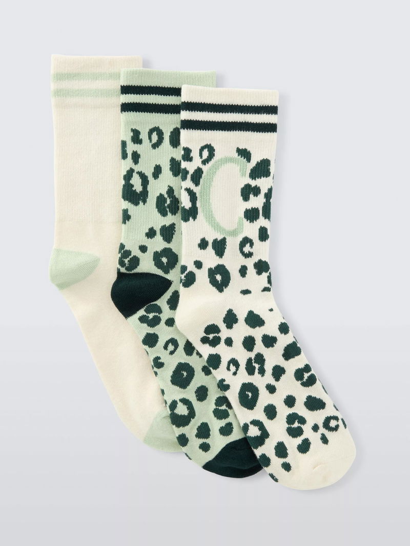 Animal Print Alphabet Ankle Socks, C, Pack Of 3, Green
