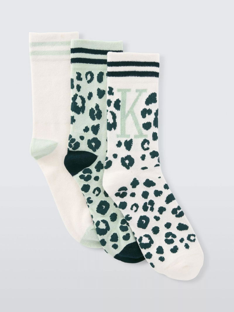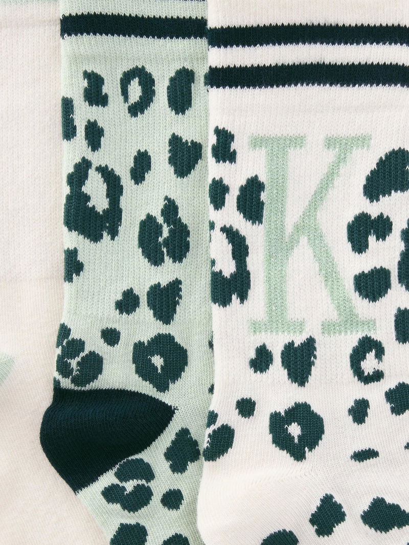 Animal Print Alphabet Ankle Socks, K, Pack Of 3, Green