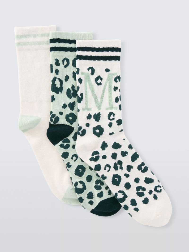 Animal Print Alphabet Ankle Socks, M, Pack Of 3, Green