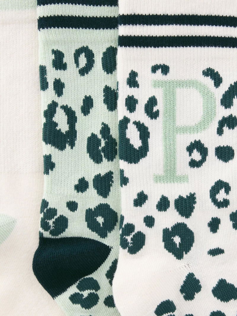 Animal Print Alphabet Ankle Socks, P, Pack Of 3, Green