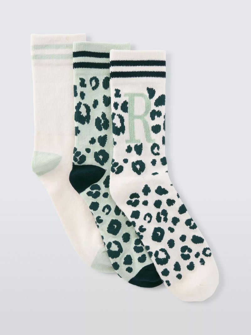 Animal Print Alphabet Ankle Socks, R, Pack Of 3, Green