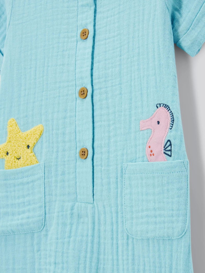 Baby Character Muslin Romper, Blue
