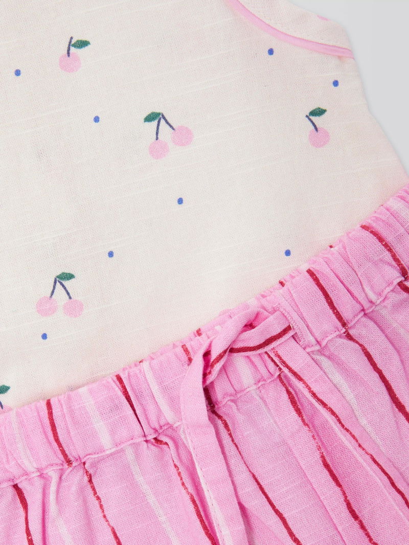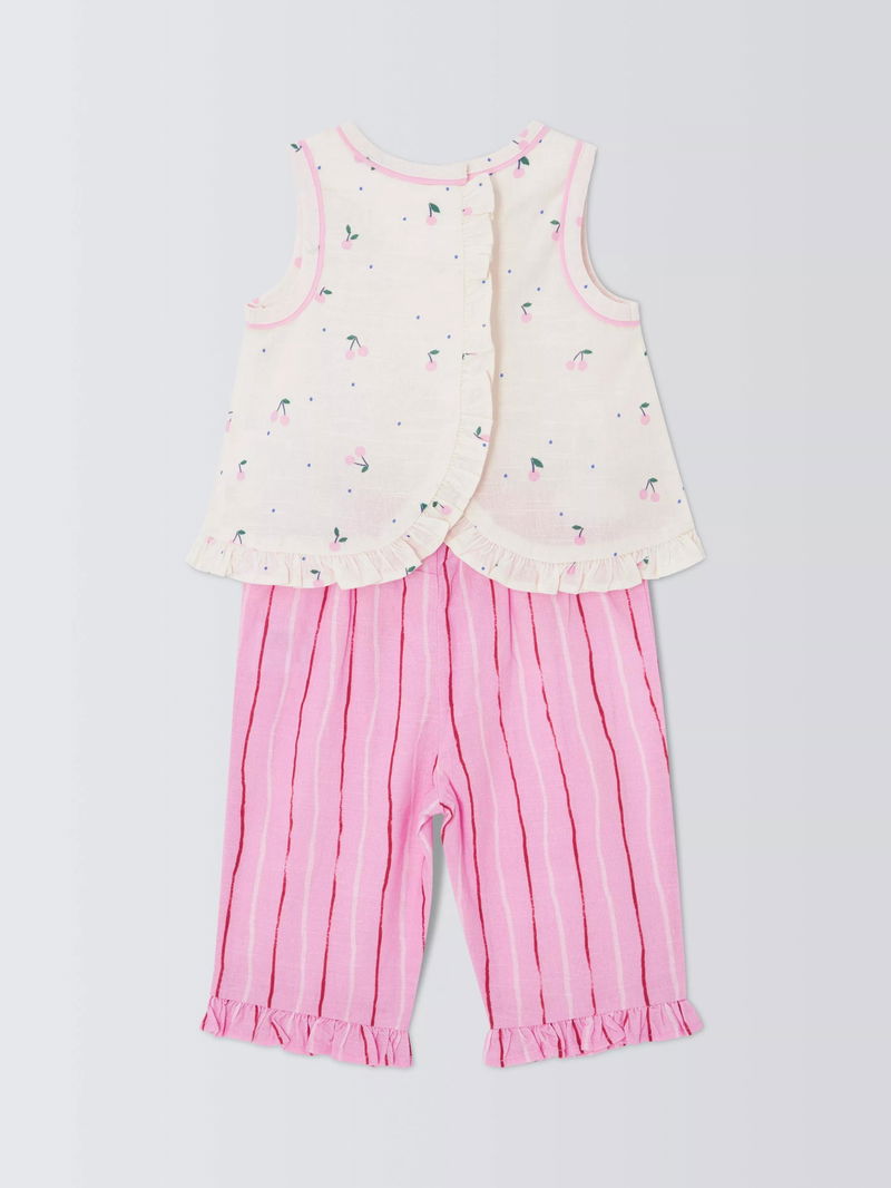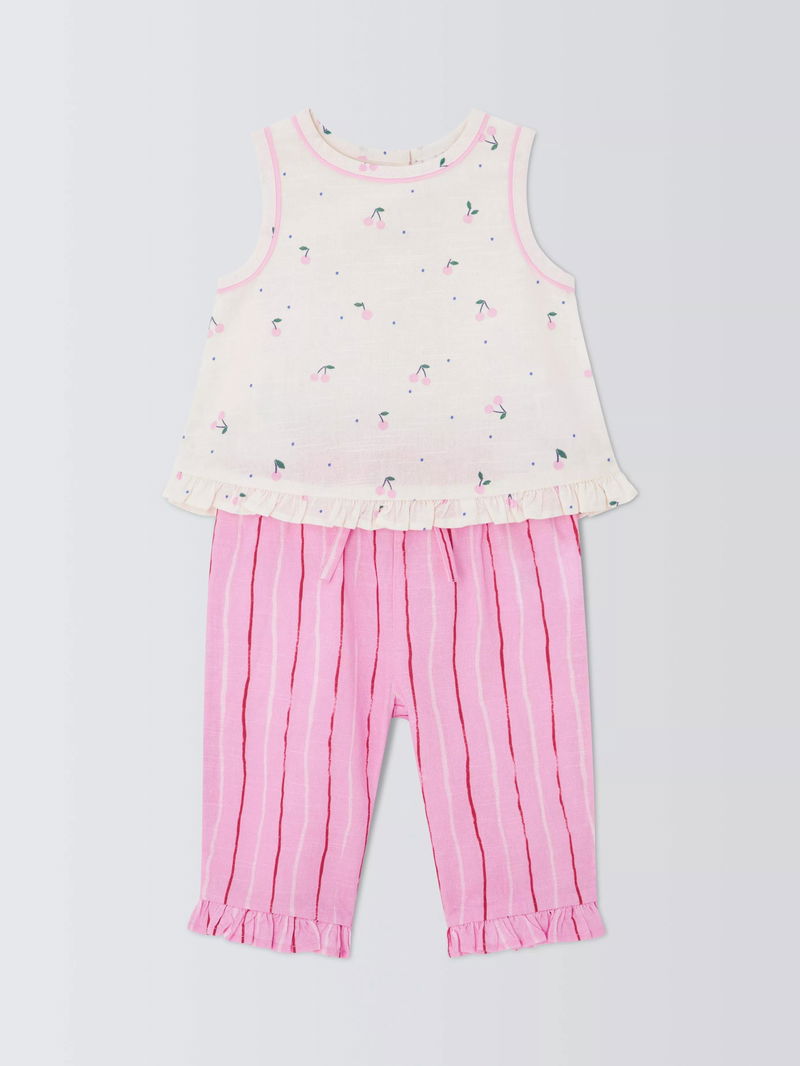 Baby Cherry Sleeveless Top & Trousers Set, Pink