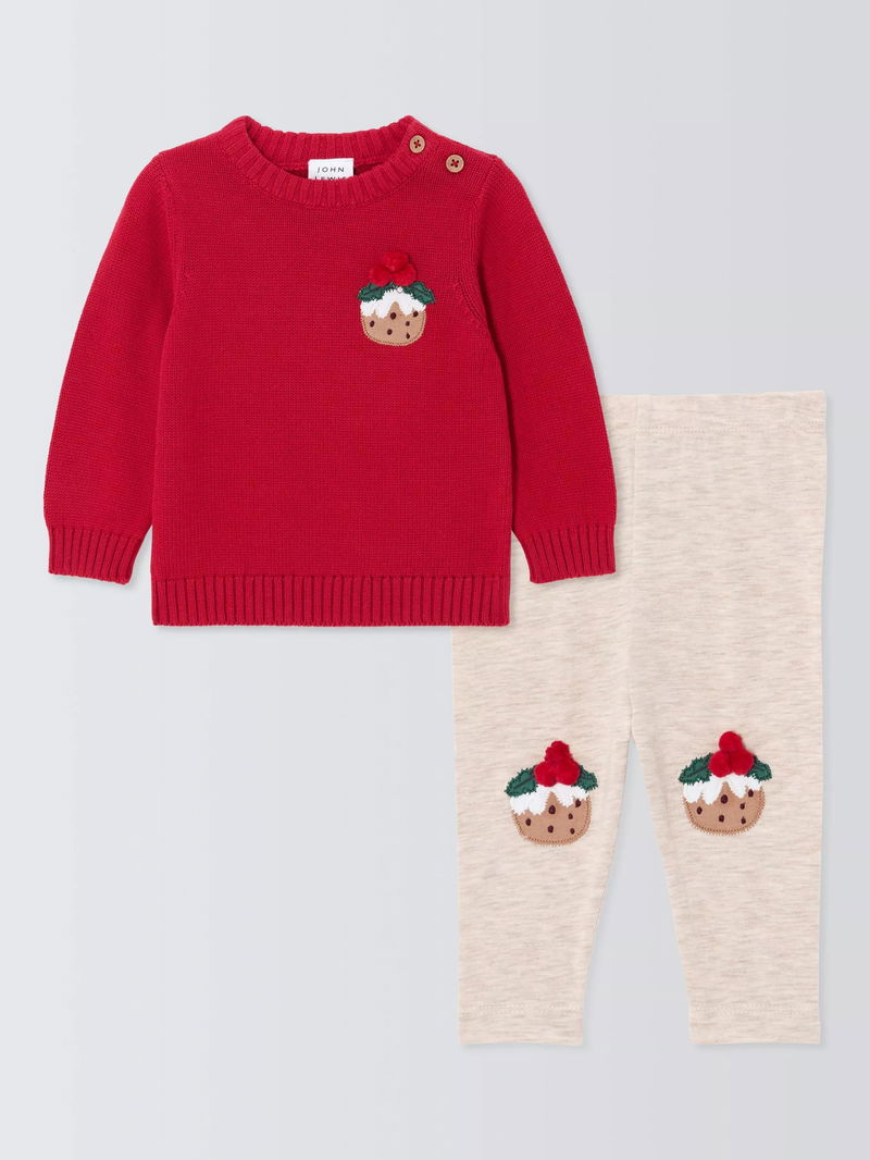 Baby Christmas Pudding Jumper & Leggings Set, Red