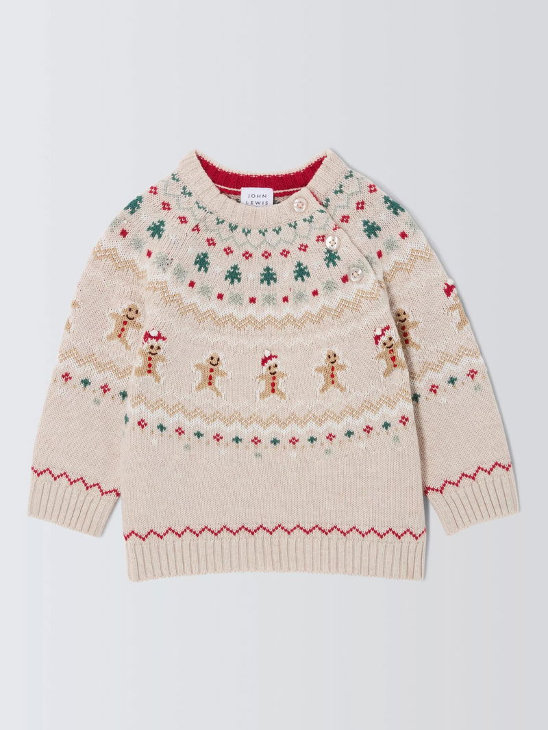 Baby Gingerbread Fairisle Wool Blend Jumper, Natural