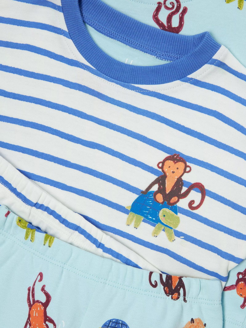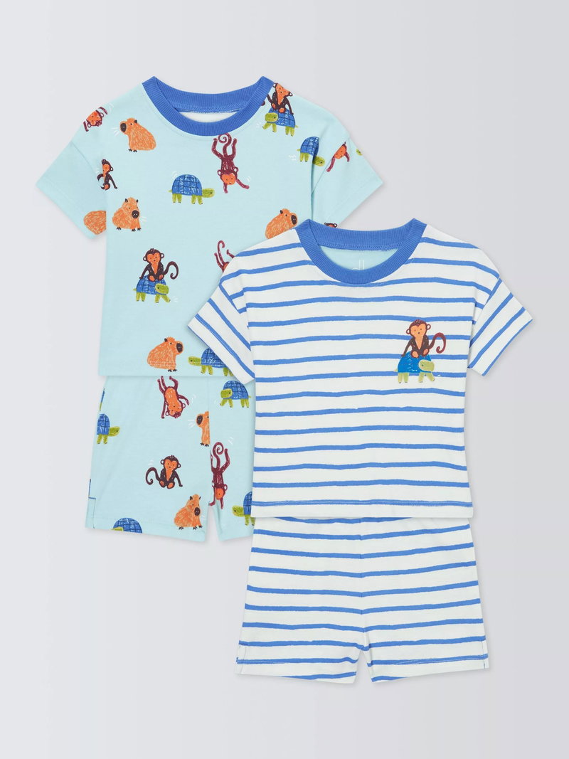 Baby Monkey Short Pyjamas, Pack Of 2, Blue Multi