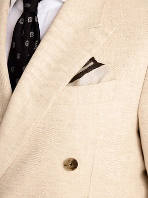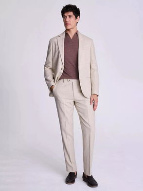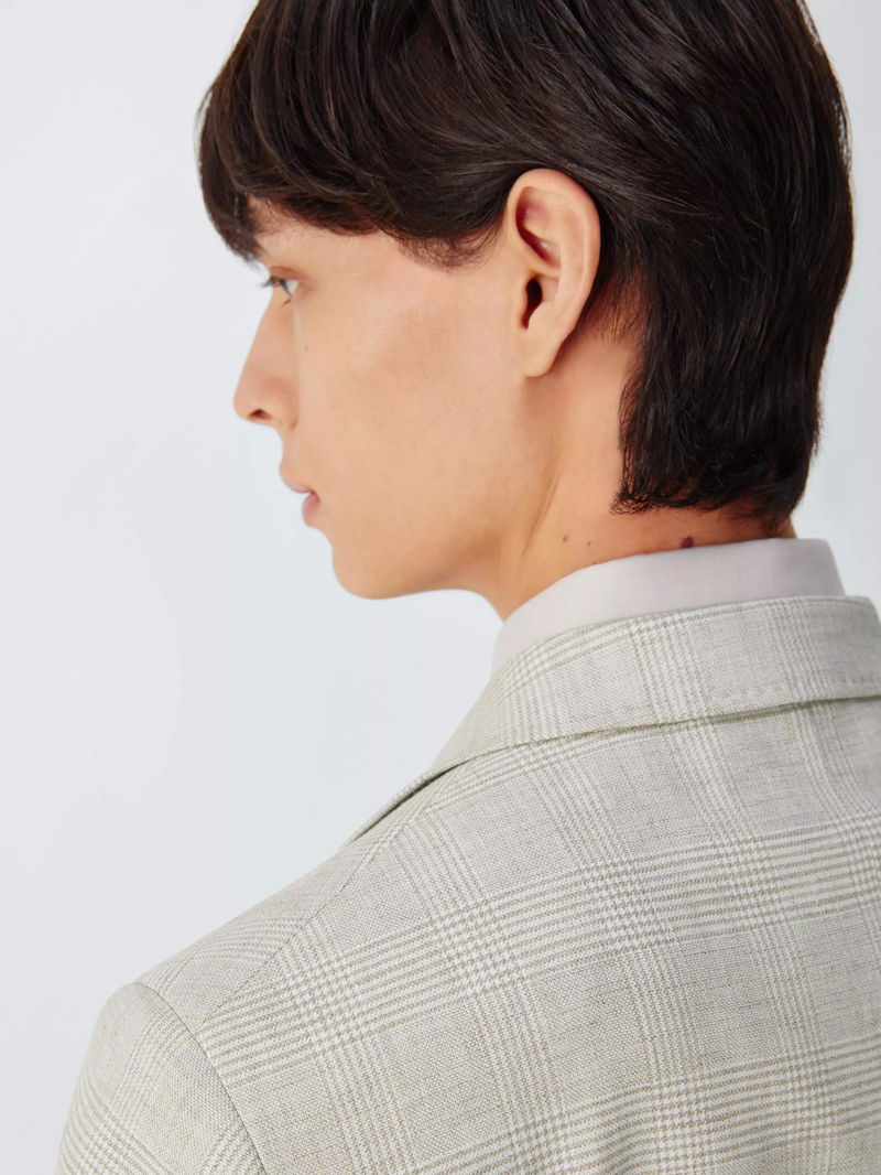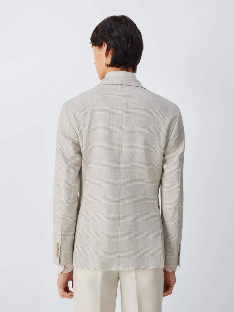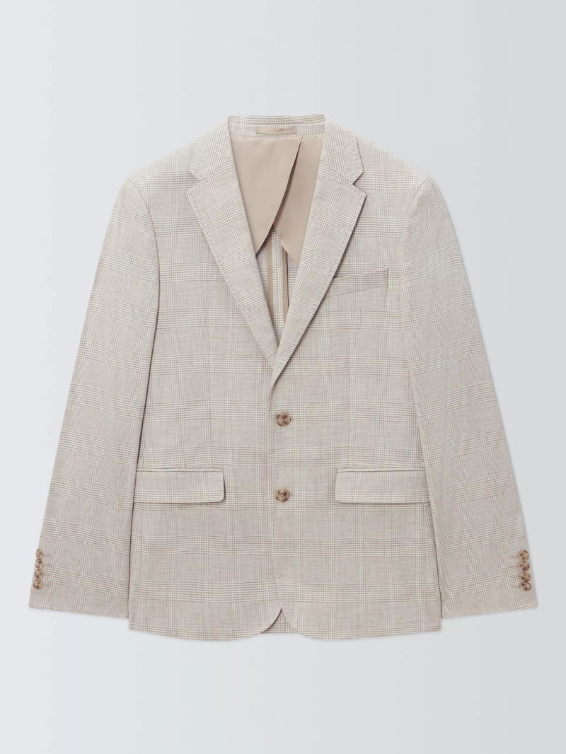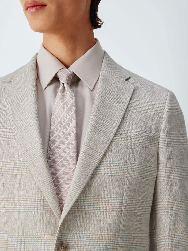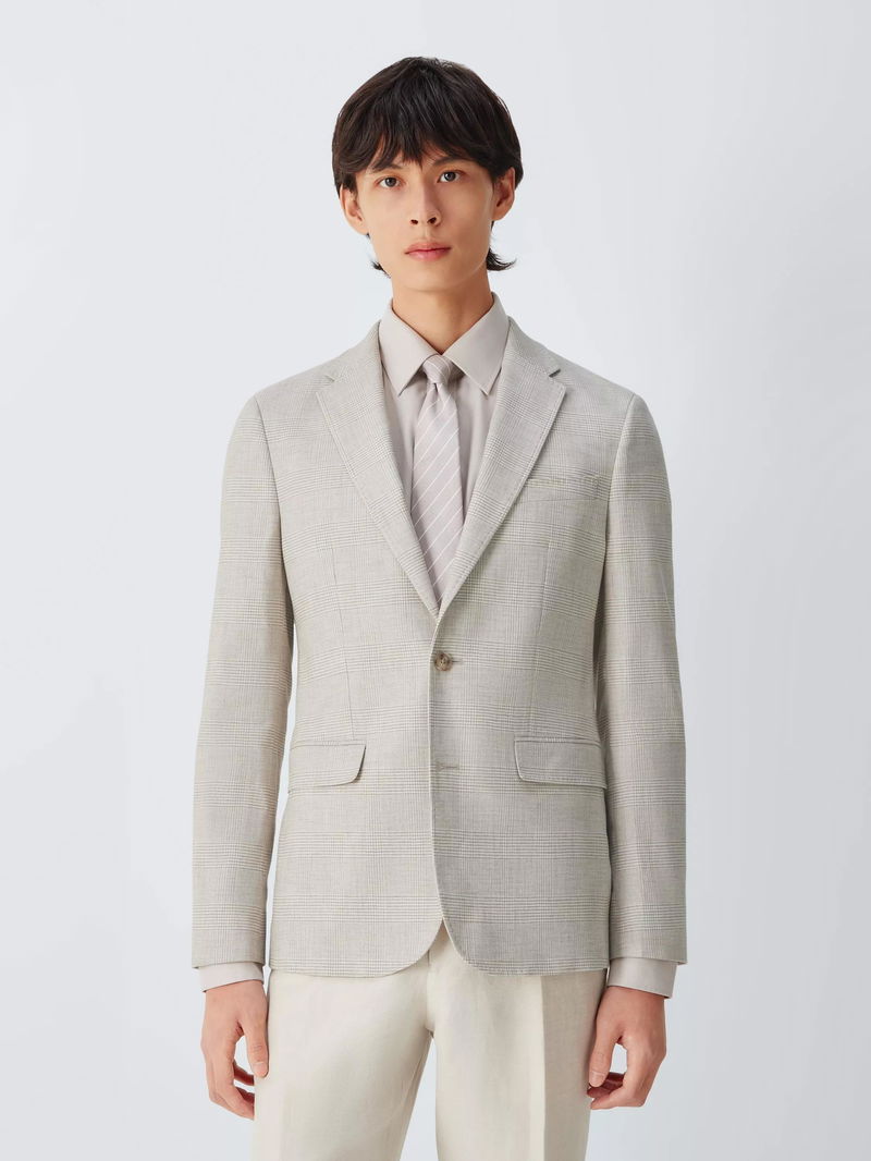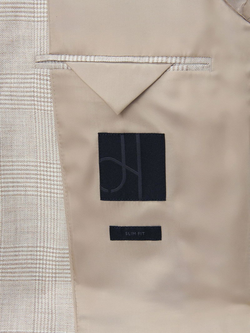 Cotton Blend Check Slim Fit Suit Jacket With Linen, Ecru