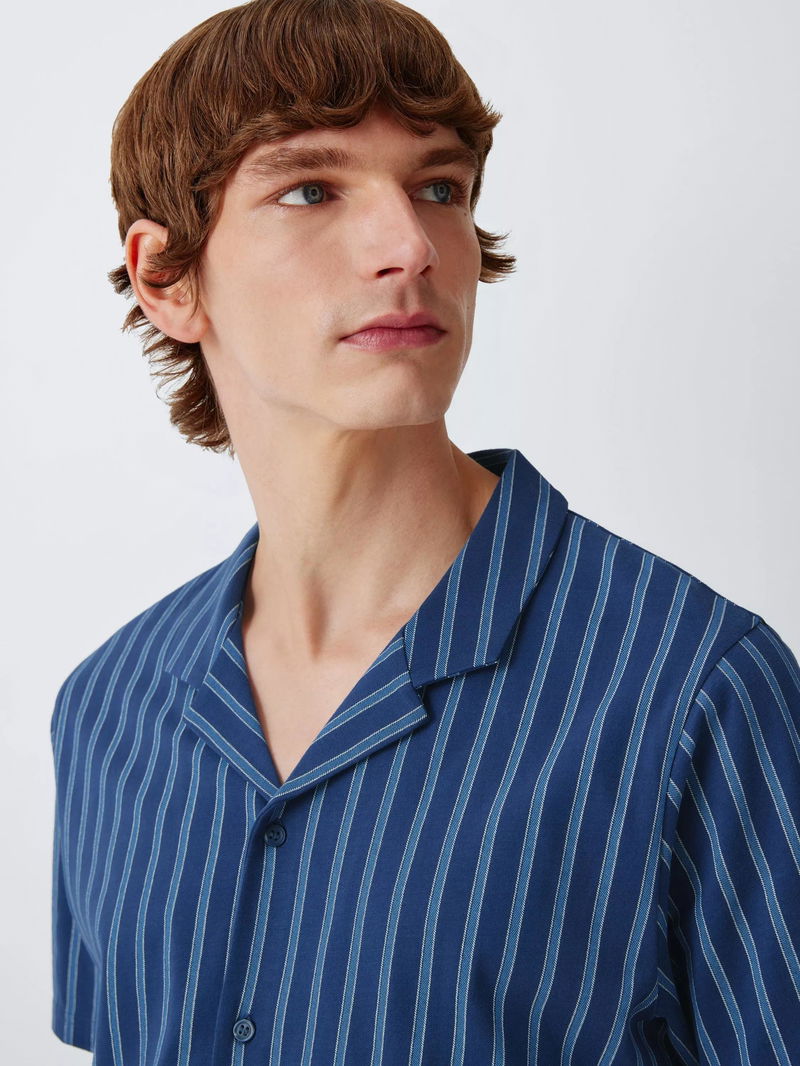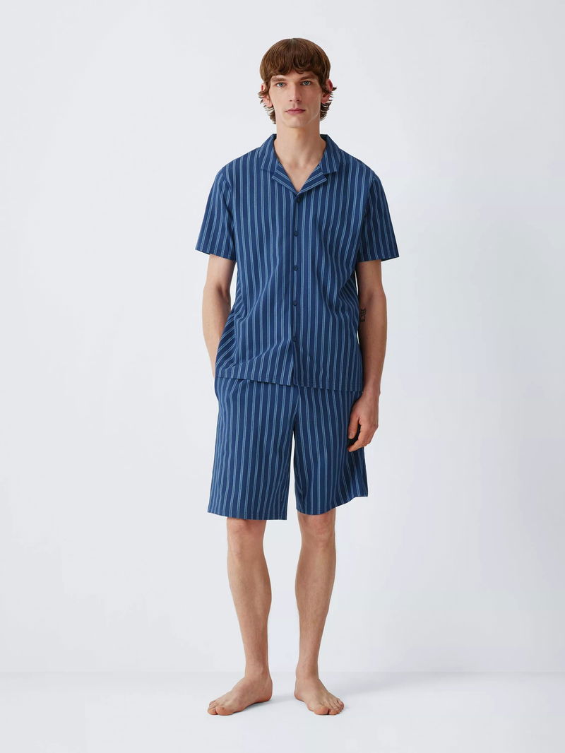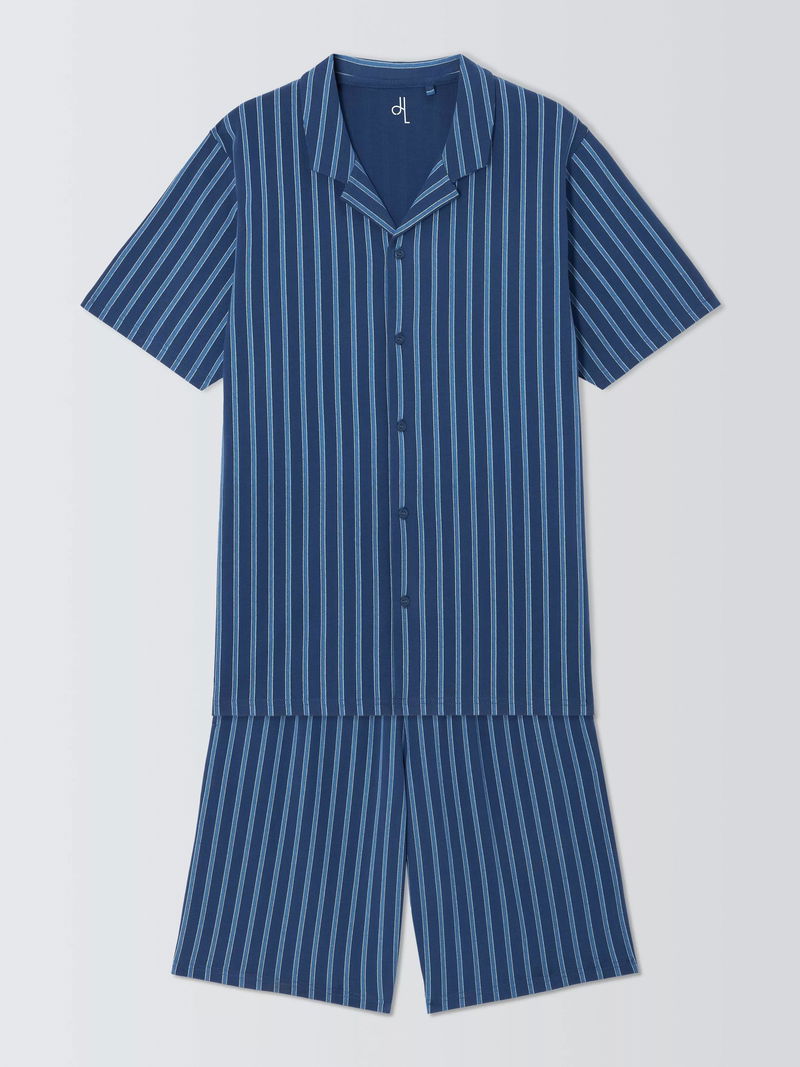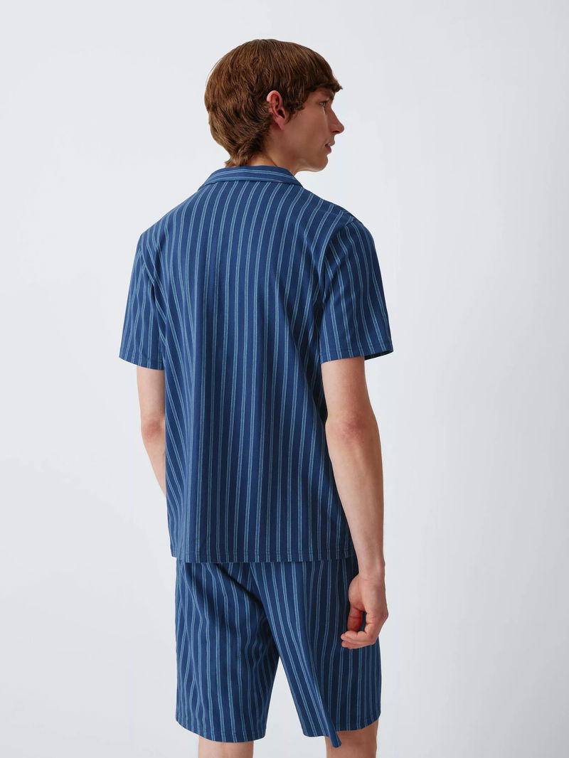 Cotton Jersey Stripe Short Pyjama Set, Blue Navy