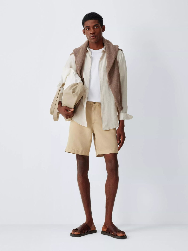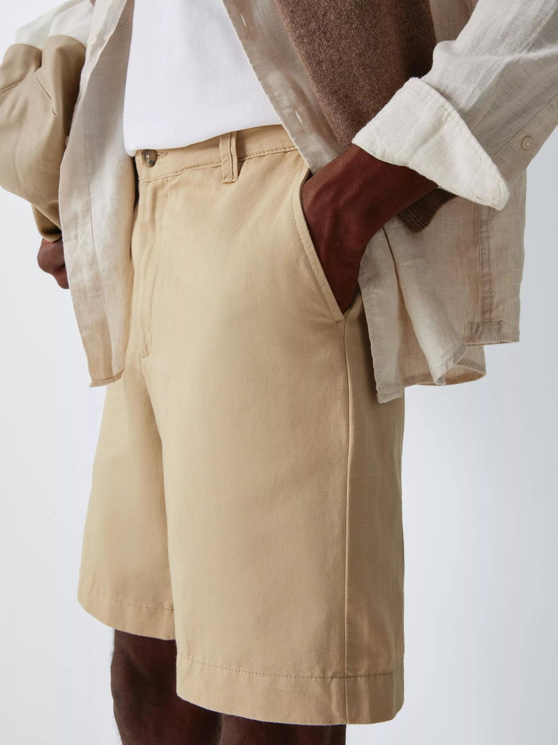 Cotton and linen blend shorts, made of a breathable fabric that holds its shape. The fabric combines the natural durability of cotton with linen's moisture-wicking properties, ensuring they feel light and gain character with every wear.