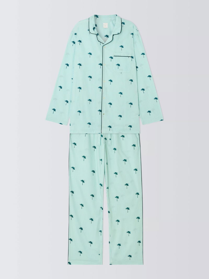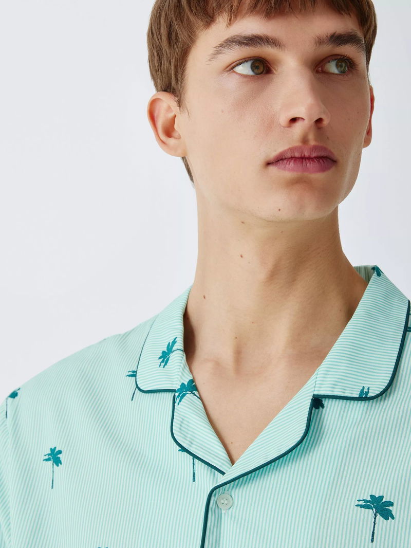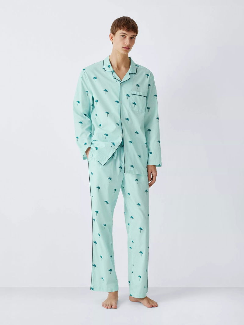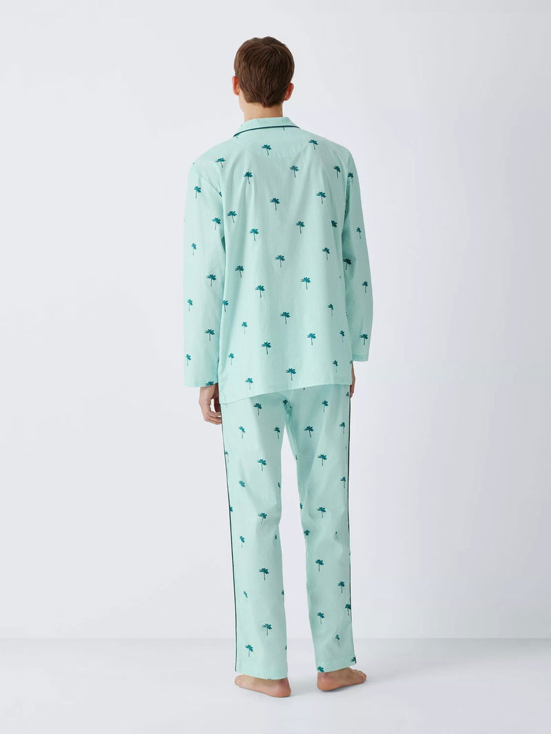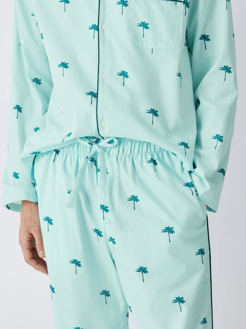 Cotton Palm Print Pyjama Set, Green Teal