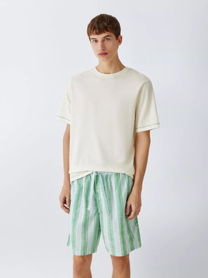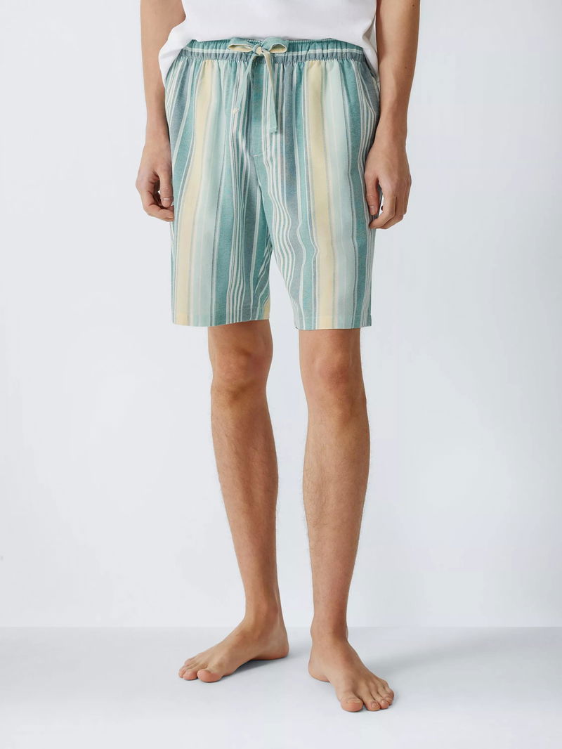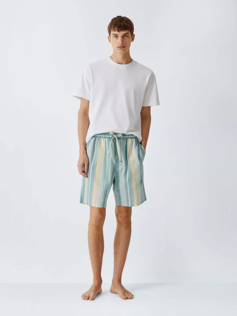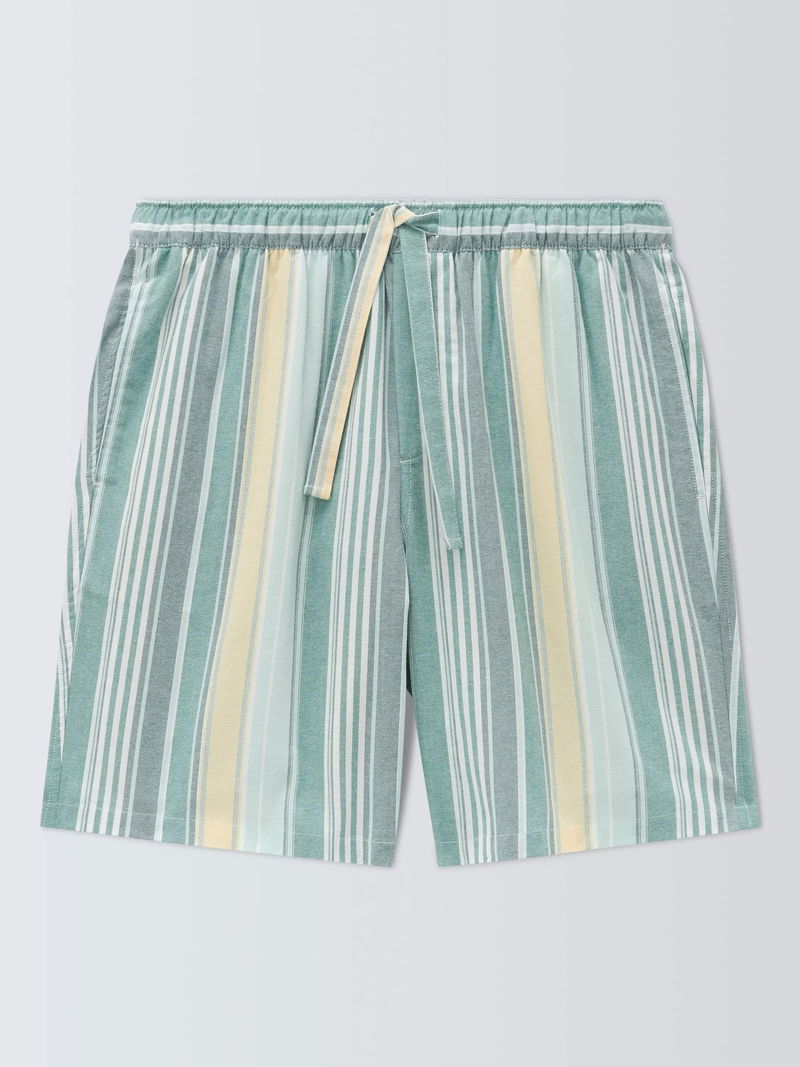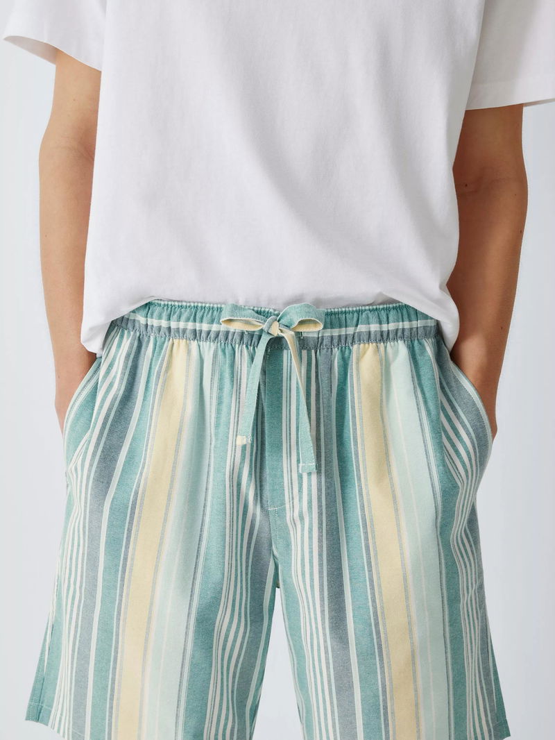 Cotton Stripe Pyjama Shorts, Green Teal