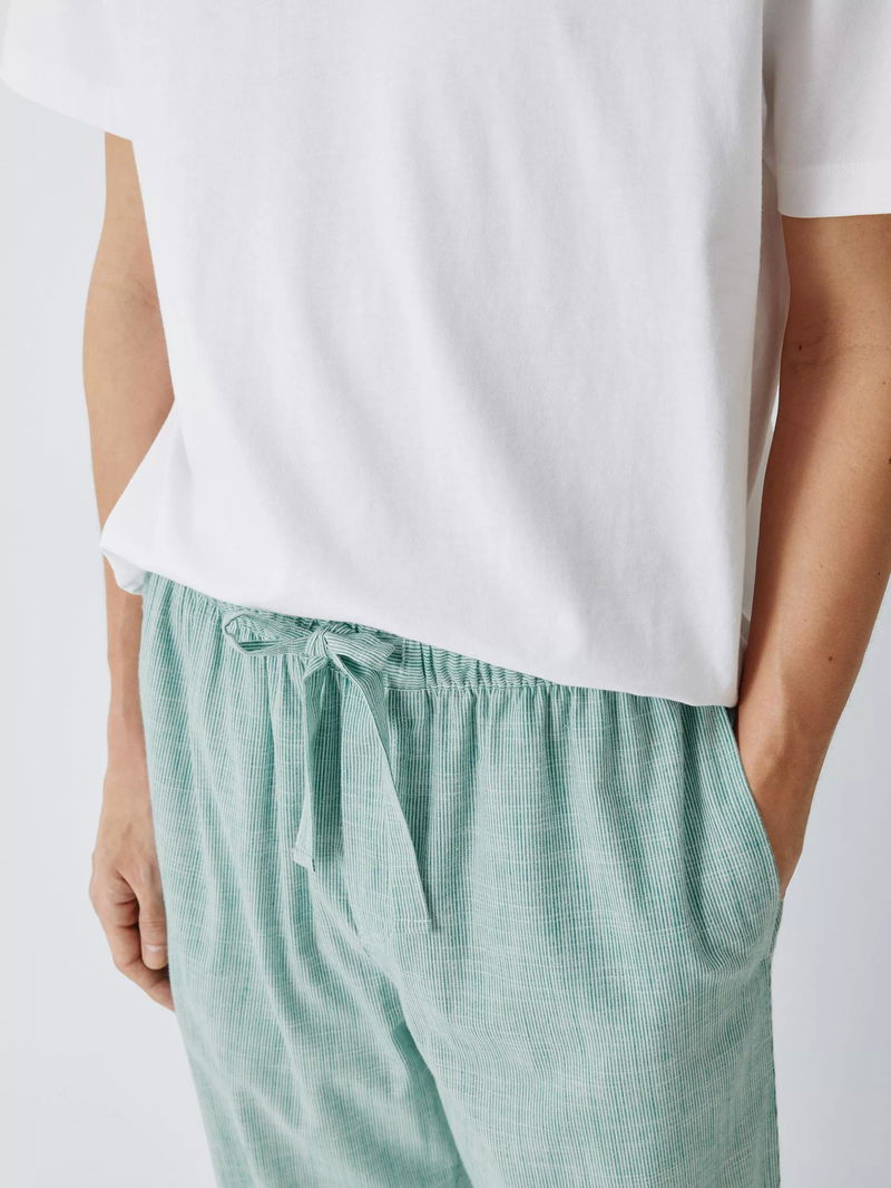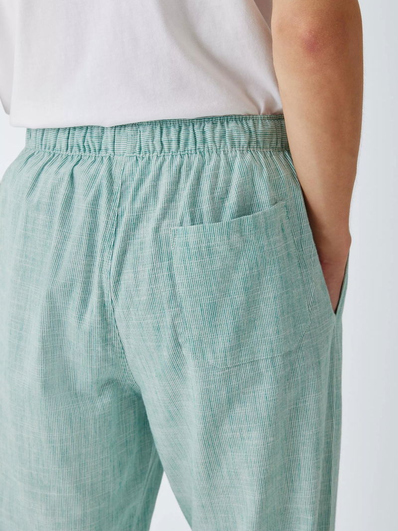 Cotton Ticking Stripe Pyjama Trousers, Green Teal