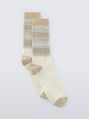 Fair Isle Fleur De Lis Wool Blend Crew Socks, Navy
