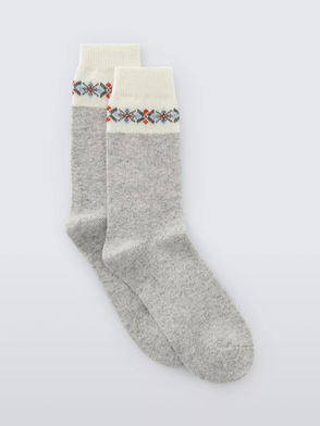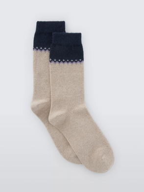 Fair Isle Tip Wool Blend Crew Socks, Blue