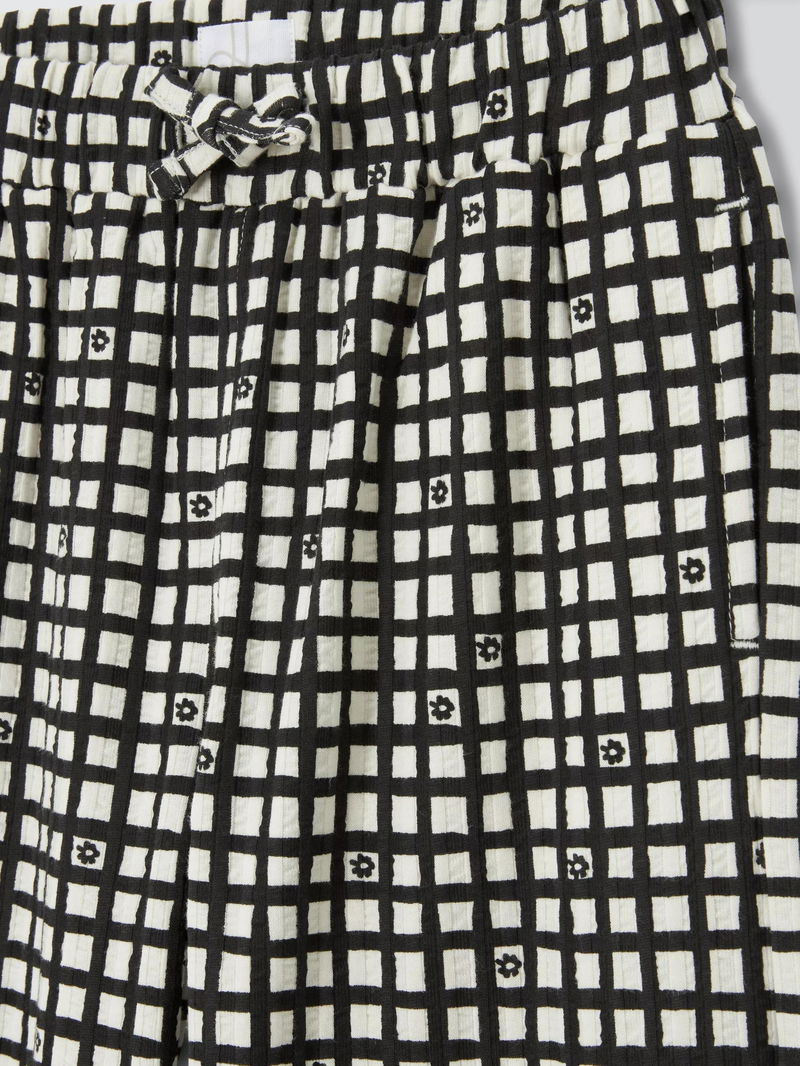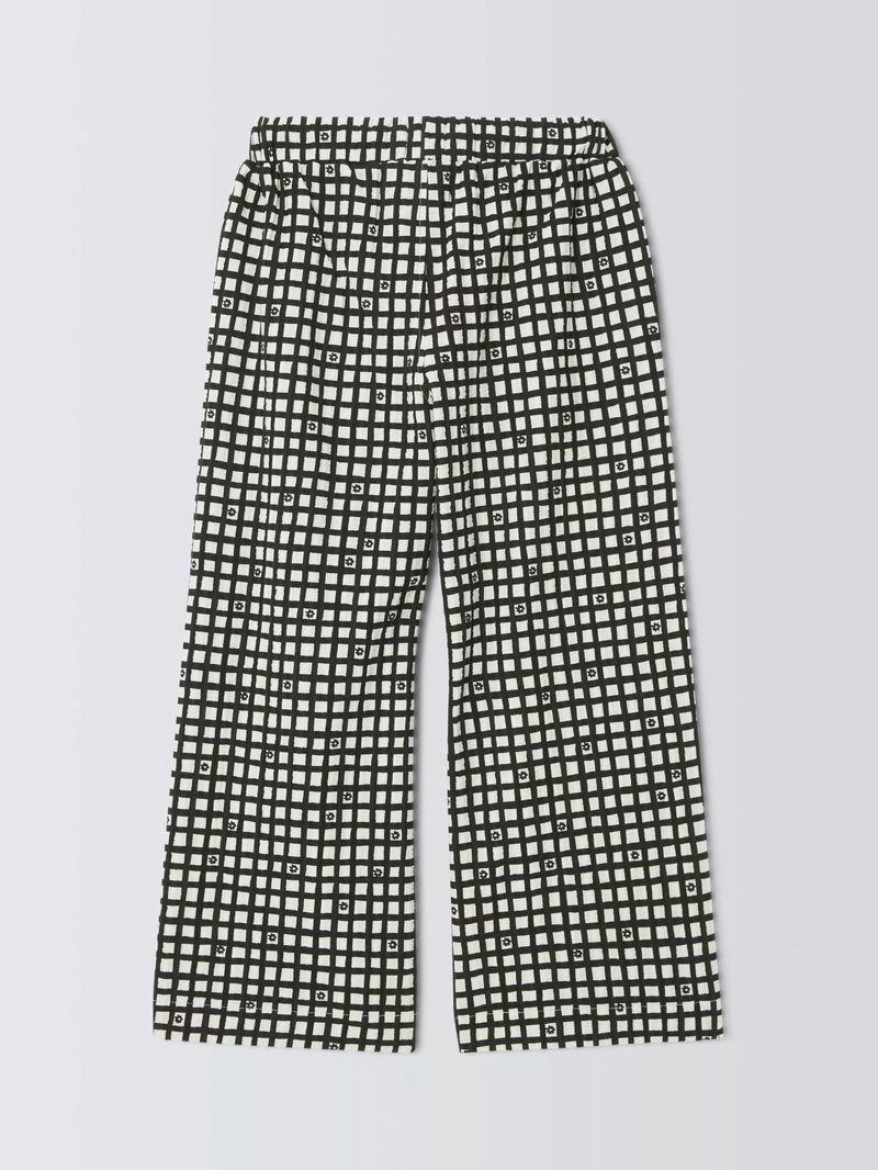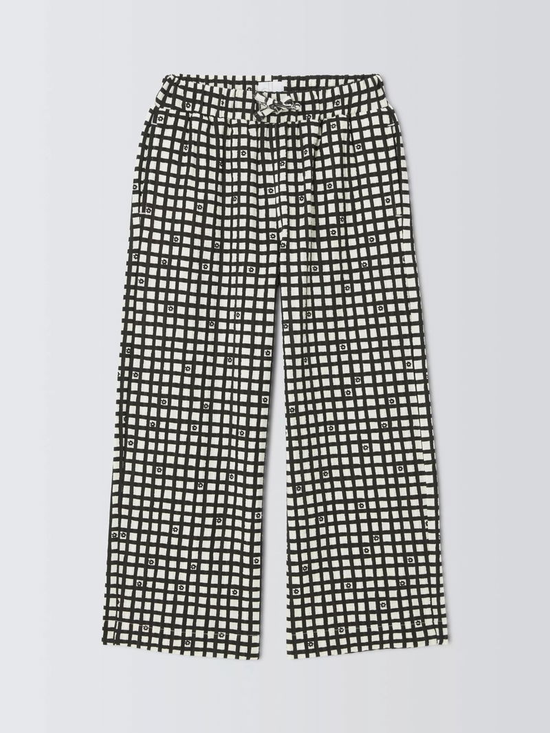 Floral Gingham Wide Leg Trousers, White, Black