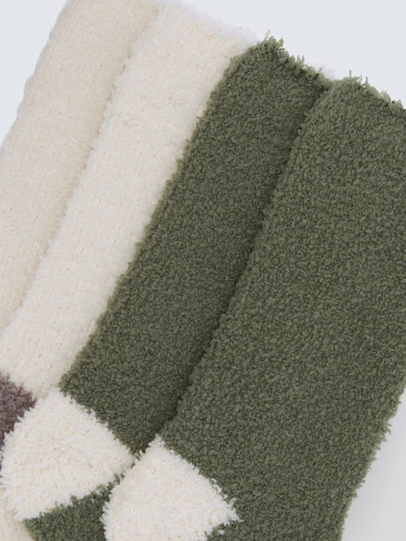 Fluffy Bed Socks, Khaki/Ivory, Pack Of 2