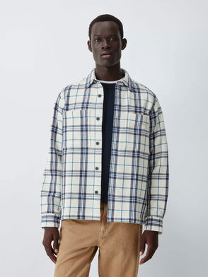 Grid Check Regular Fit Cotton Shirt, White