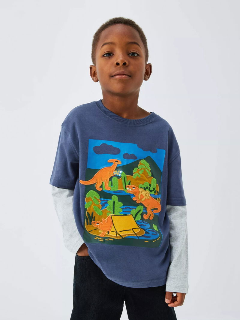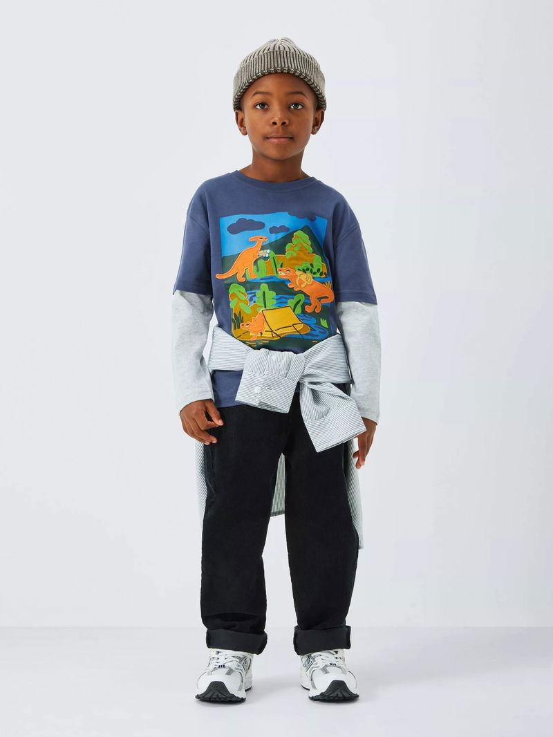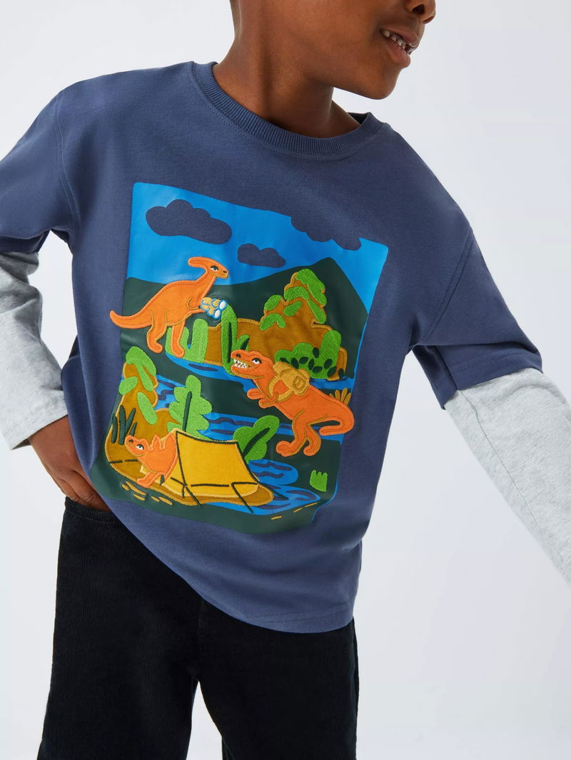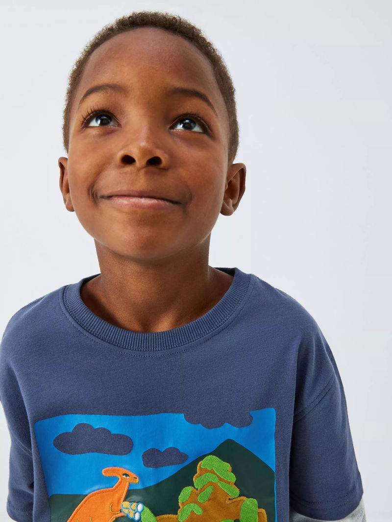 Kids' Cotton Dinosaur Print Long Sleeve T-Shirt, Blue/Multi