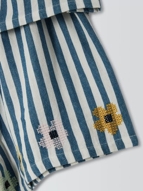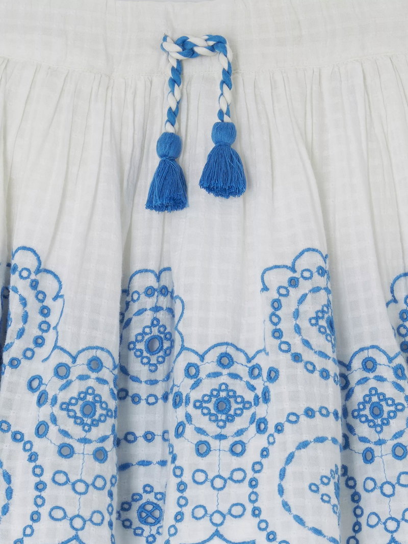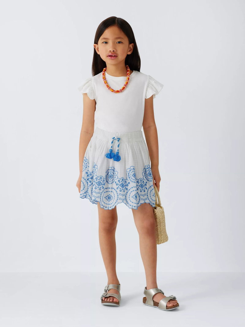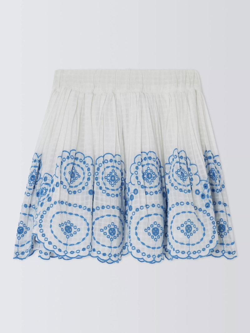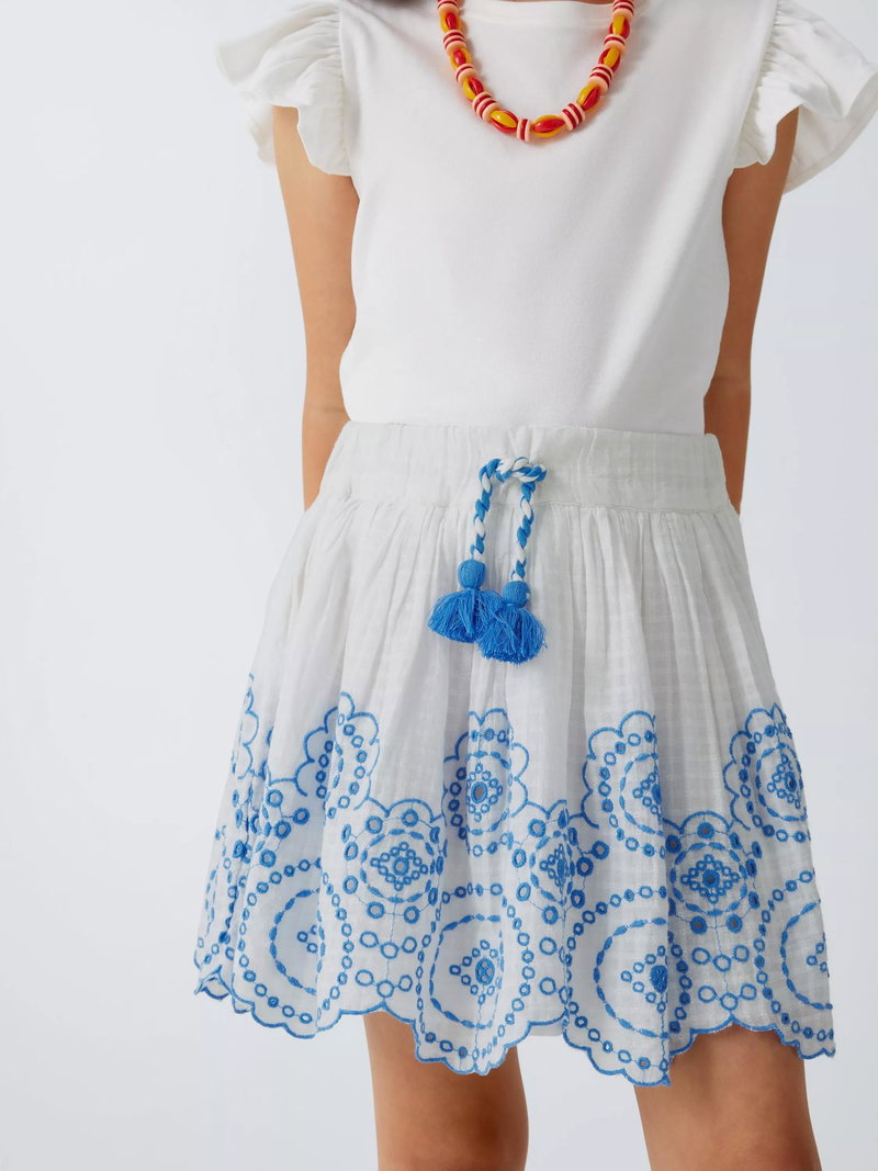 Kids' Embroidered Floral Skirt, Cream, Navy