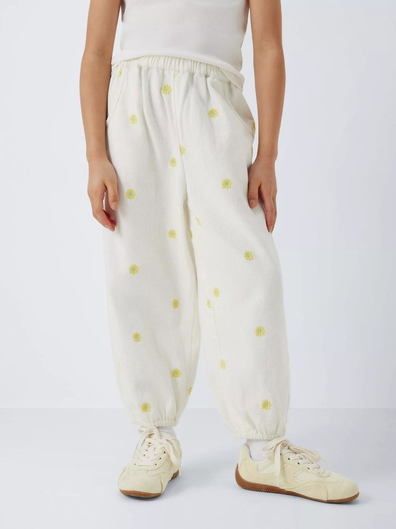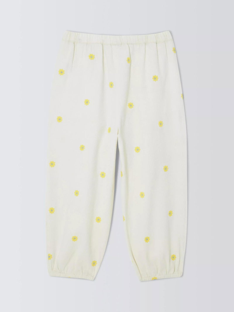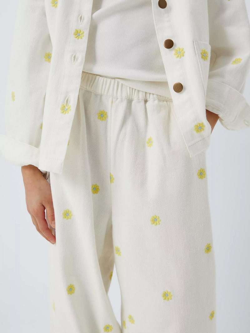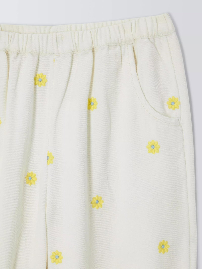 Kids' Embroidered Floral Twill Trousers, Yellow, White
