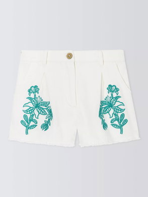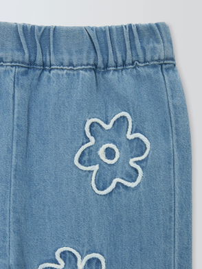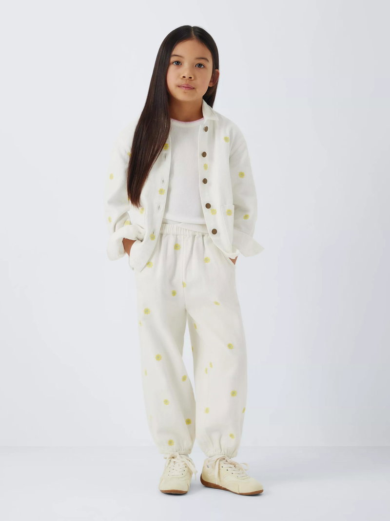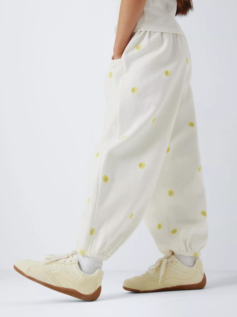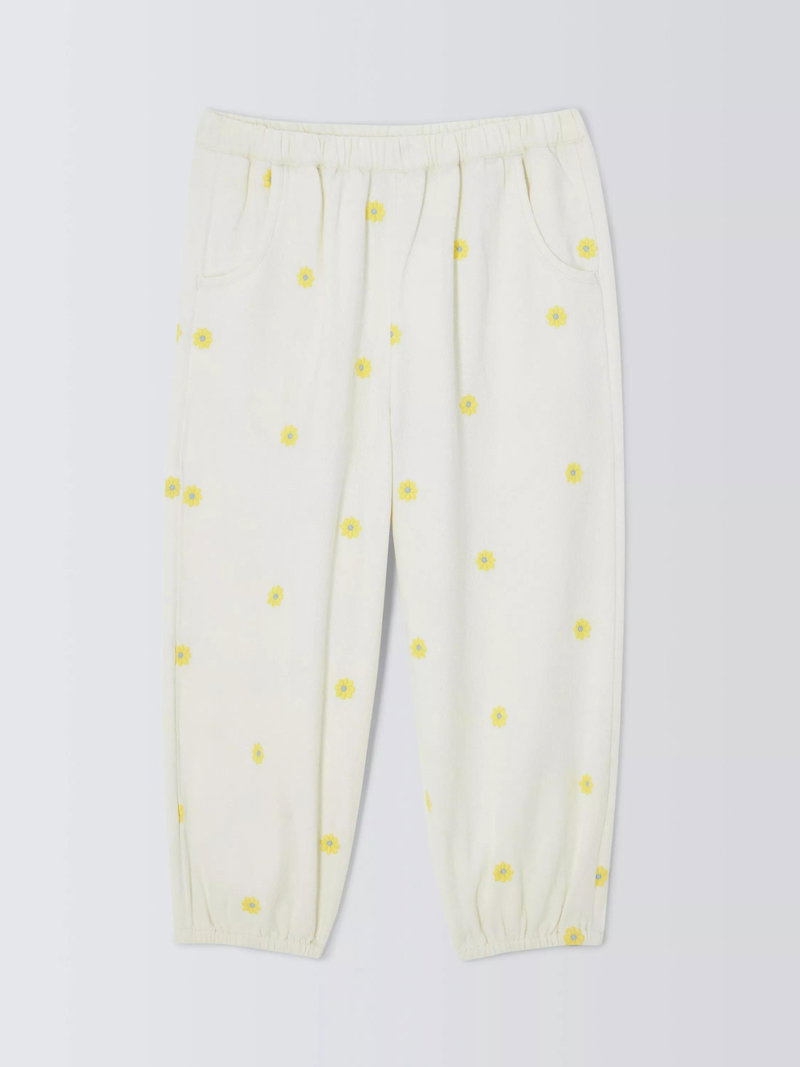 Kids' Embroidered Floral Twill Trousers, Yellow, White