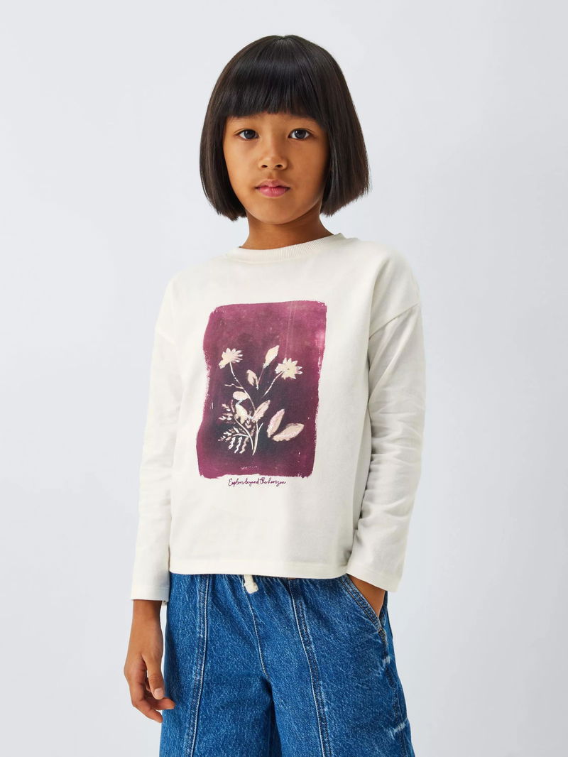 Kids' Floral Foil Graphic Top, Cream, Berry