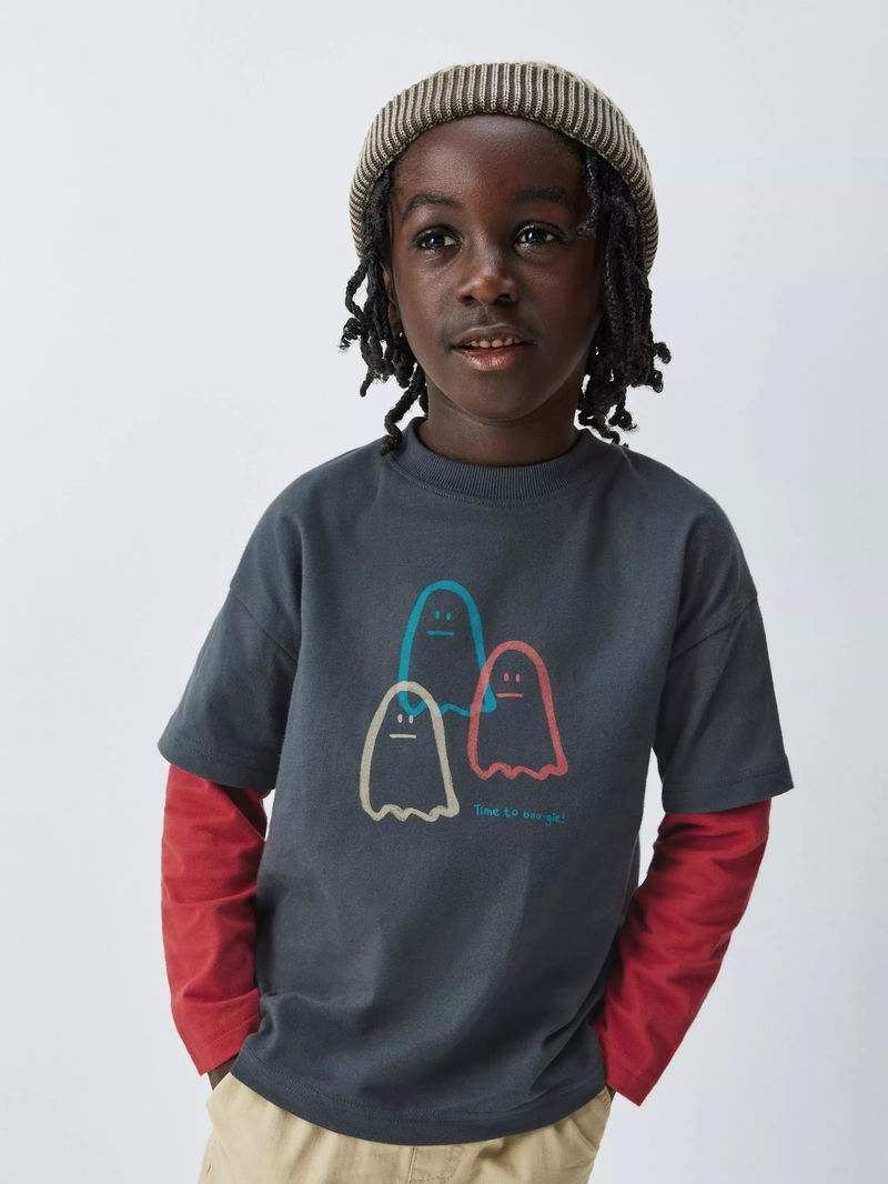 Kids' Ghosts Mock Sleeve Top, Charcoal
